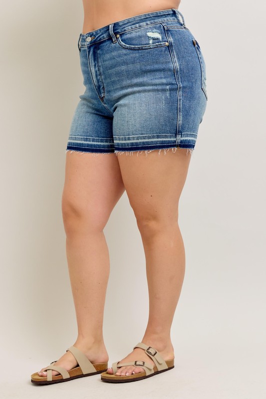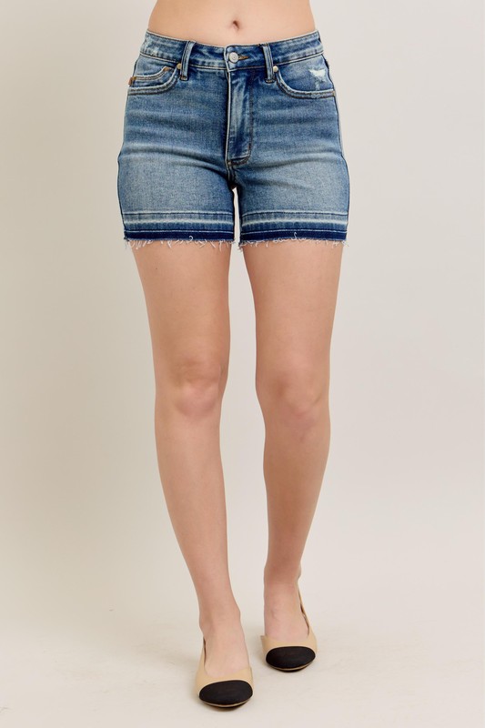 The Mr tummy control vintage wash release hem shorts combine style and functionality for a flattering and trendy look. With tummy control features and a vintage wash finish, these shorts offer a comfortable and slimming silhouette. The release hem adds a unique and edgy touch to the overall design. Perfect for those looking to feel confident and fashionable while staying comfortable.