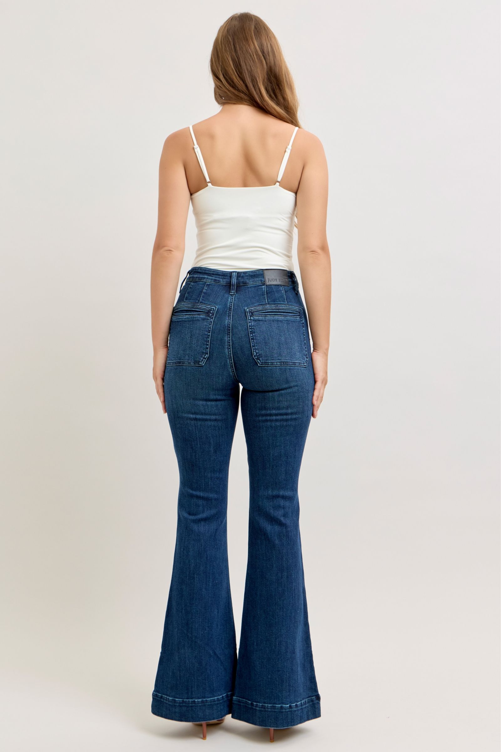 The High-Waisted Flare Jeans with Front Pockets are a versatile and flattering addition to your wardrobe. The high-waisted design creates a sleek and elongated silhouette. Featuring front pockets for added functionality, these jeans are both stylish and practical. Pair them with a tucked-in blouse or a cropped top to accentuate the flare silhouette. Elevate your look with these on-trend high-waisted flare jeans for a timeless and chic outfit.