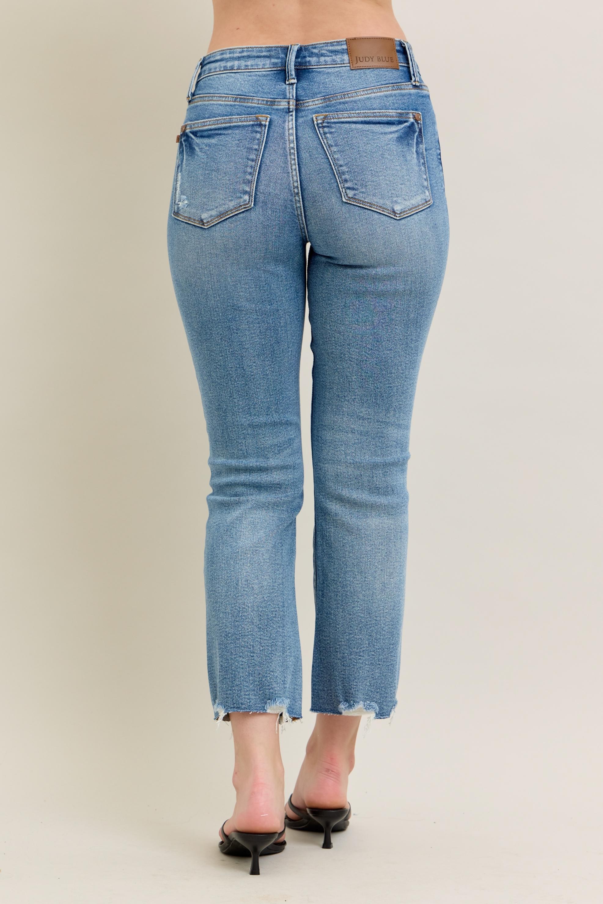 The Mr. Vintage wash destroy hem kick flare jeans offer a trendy and edgy option for your wardrobe. The vintage wash adds a cool, lived-in look to the jeans. The destroyed hem and kick flare style bring a unique and modern touch to the design. Perfect for adding a fashion-forward and statement-making element to your outfits. Pair them with a simple top and boots for a stylish and casual ensemble that exudes confidence and flair. Ideal for those who want to stand out with a bold and contemporary denim choice.