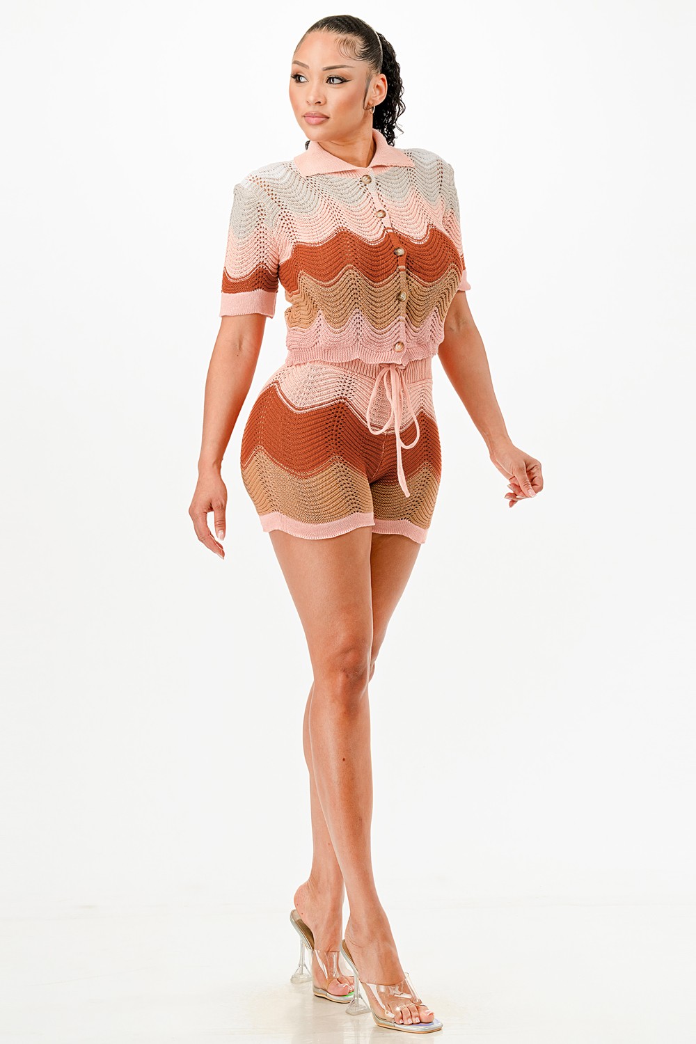 Soft, breezy, and effortlessly styled, this knit cardigan short set is your go-to for warm-weather layering and relaxed days. The collared cardigan features a textured knit or crochet finish with a casual, open-front design, pairing perfectly with the coordinating drawstring shorts. Lightweight and comfortable, this two-piece set offers easy movement and understated charm. Available in two versatile colors, it's ideal for beach days, lounging, or layering over your favorite summer basics.