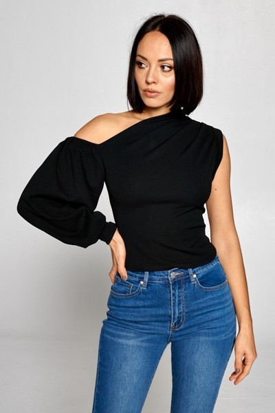 Add our Ladies One-Shoulder Top in classic black to your wardrobe today and experience effortless style and comfort!
