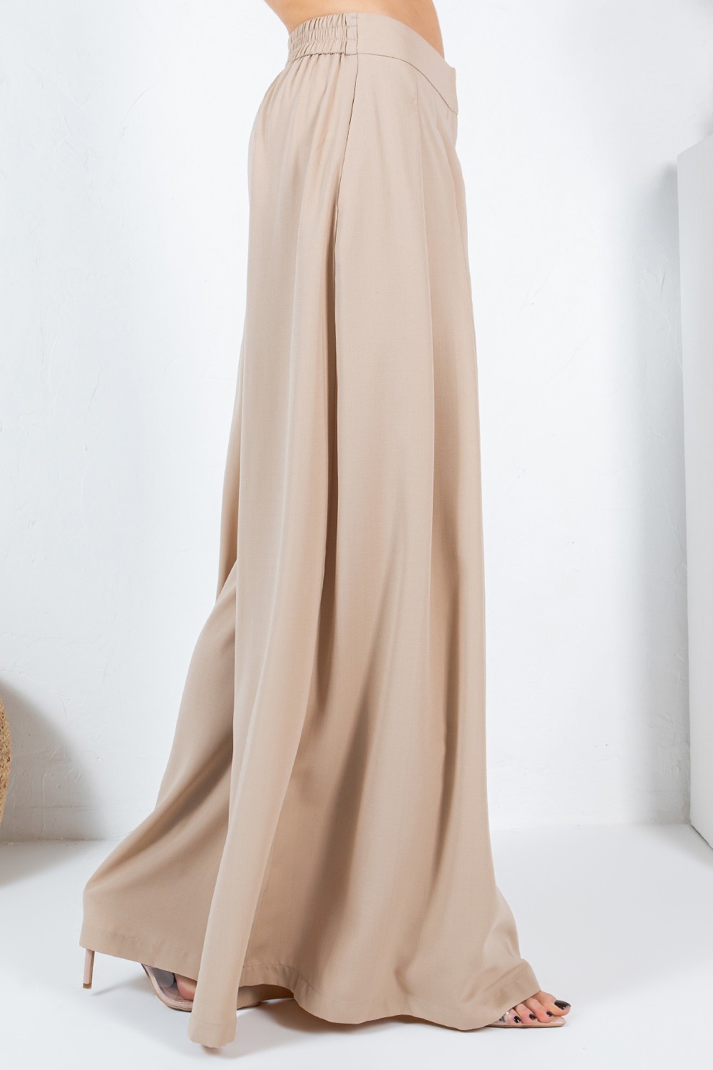These pants are the perfect combination of comfort, style, and versatility. With their pleated design and large hem, they offer a sophisticated touch to your wardrobe, while the taupe color makes them easy to mix and match for a variety of looks.