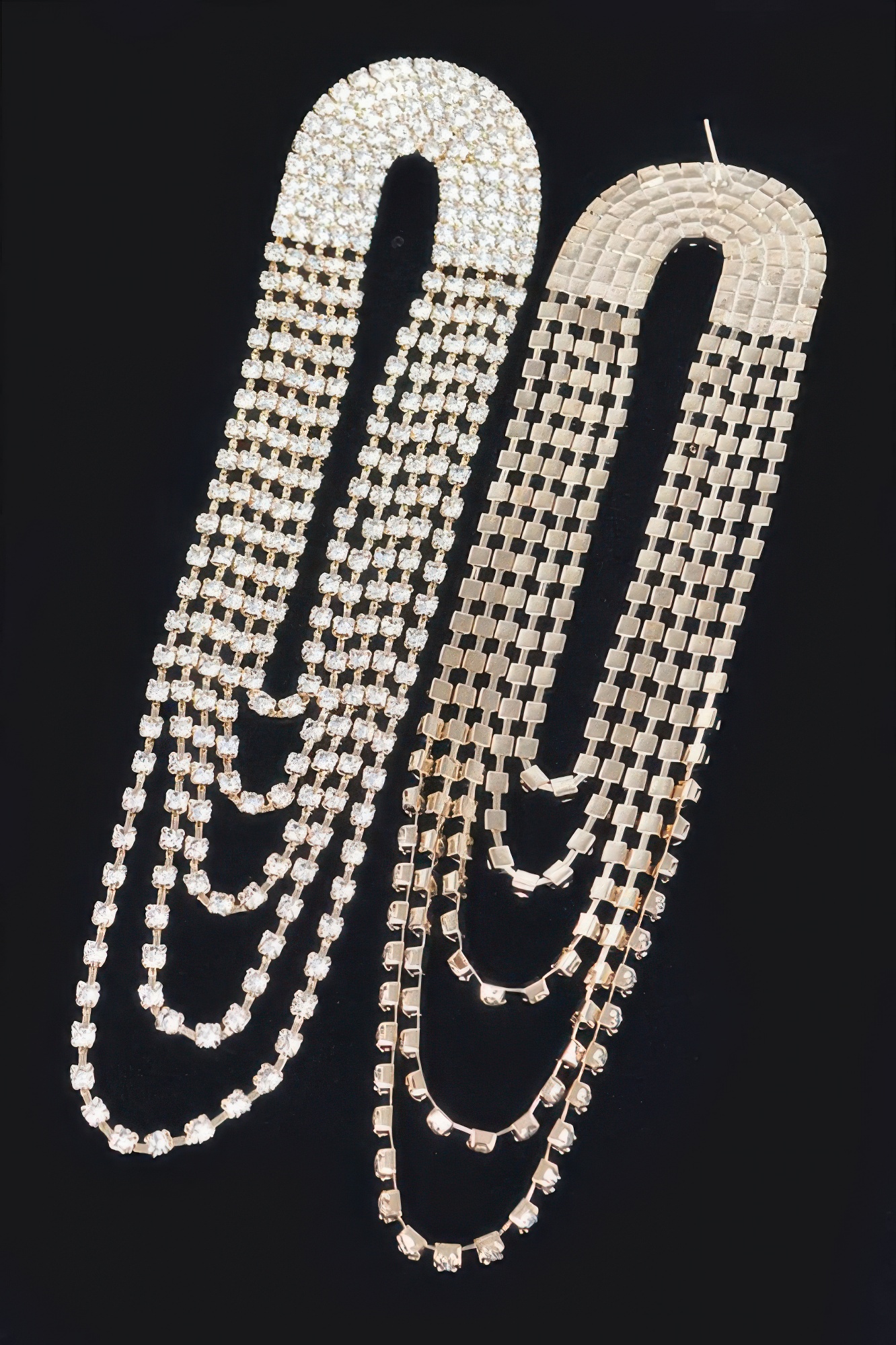 These layered rhinestone earrings create a striking statement with cascading sparkle and refined movement. Designed with multiple tiers, they offer depth and brilliance that elevate formal and evening looks. The elongated silhouette draws attention while maintaining a graceful balance. Lightweight construction ensures comfortable wear despite the dramatic length. A sophisticated accessory crafted for standout moments.
