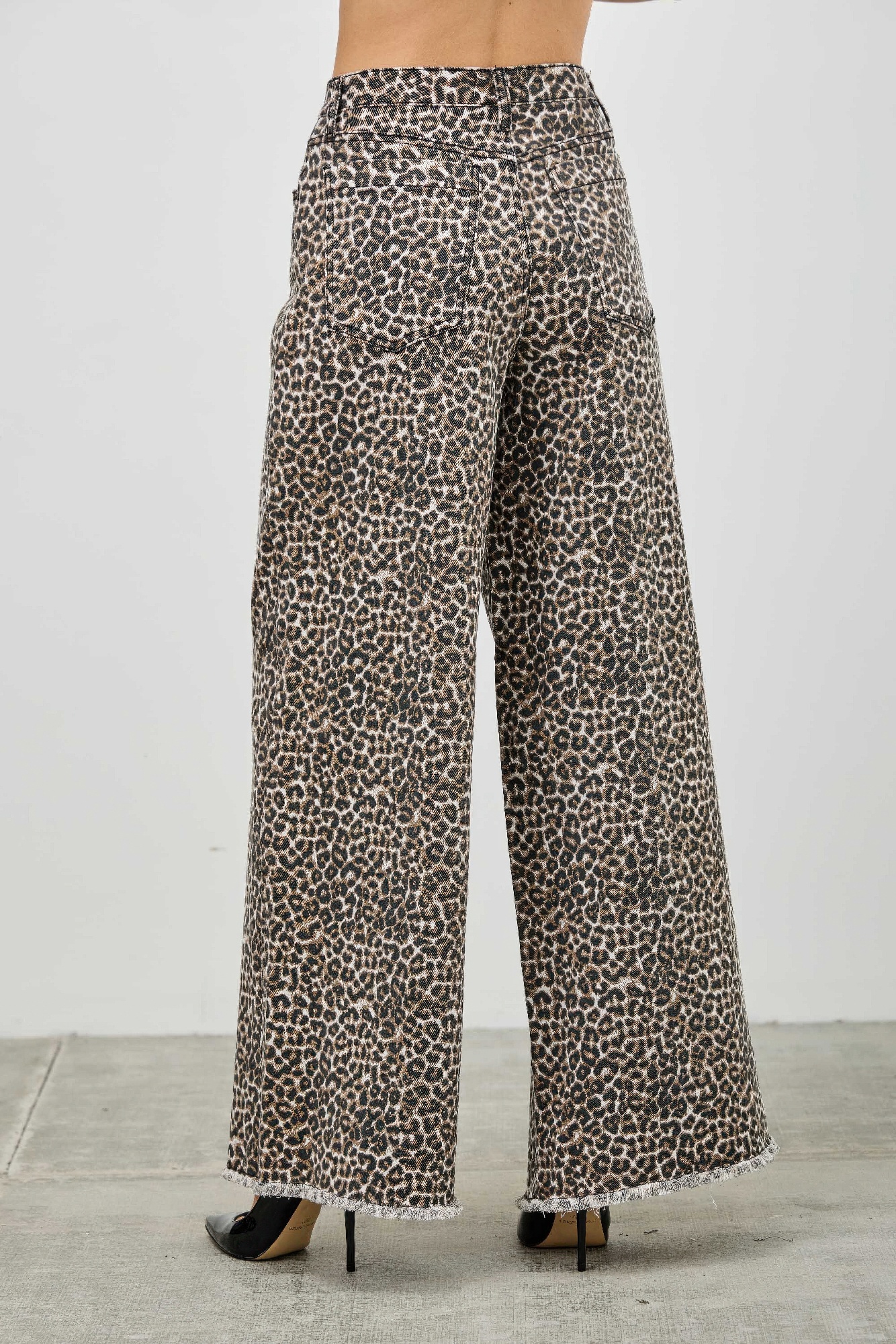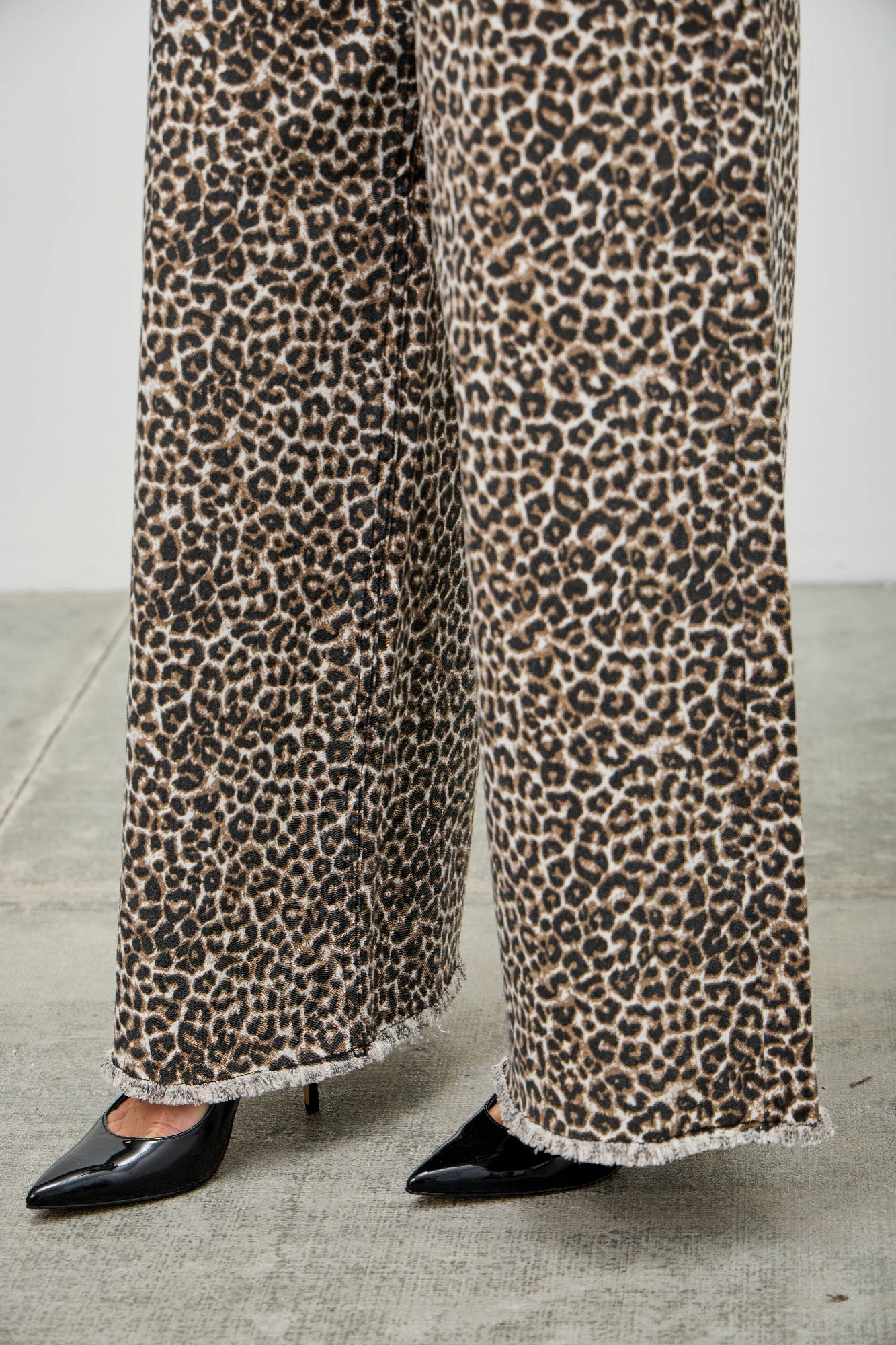 Bold and confident, these super high-rise wide-leg jeans in a striking leopard print make a statement with every step. Designed with a flattering ultra-high waist and dramatic wide-leg silhouette, they create a long, lean look while delivering standout style. Crafted from a soft, stretch-infused fabric blend, they offer comfort and flexibility without compromising structure. The allover leopard pattern adds a playful, fashion-forward edge to your denim rotation. Pair them with a simple top to let the print shine or go all in with layered textures for a bold look.