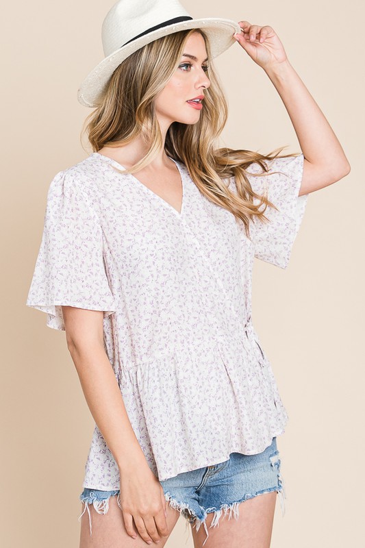 Lime 'N' Chili Ditsy Print V-Neck Short Sleeve Wrap Blouse