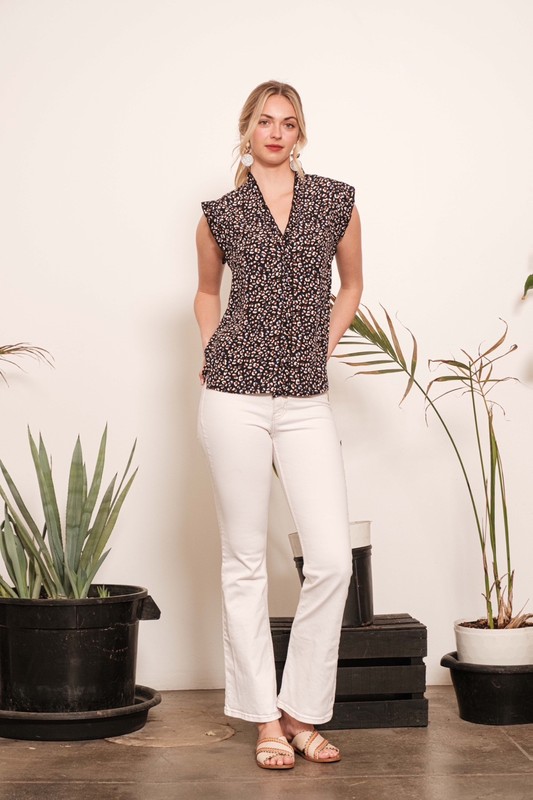 Make a statement with this Multi Dot Print Sleeveless Button Down Blouse. The playful dot print adds a touch of whimsy and fun to the blouse. The sleeveless design is perfect for warm weather and layering. The button-down style offers a classic and versatile look. Pair with pants or a skirt for a chic and stylish outfit. Embrace a trendy and feminine style with this eye-catching blouse.