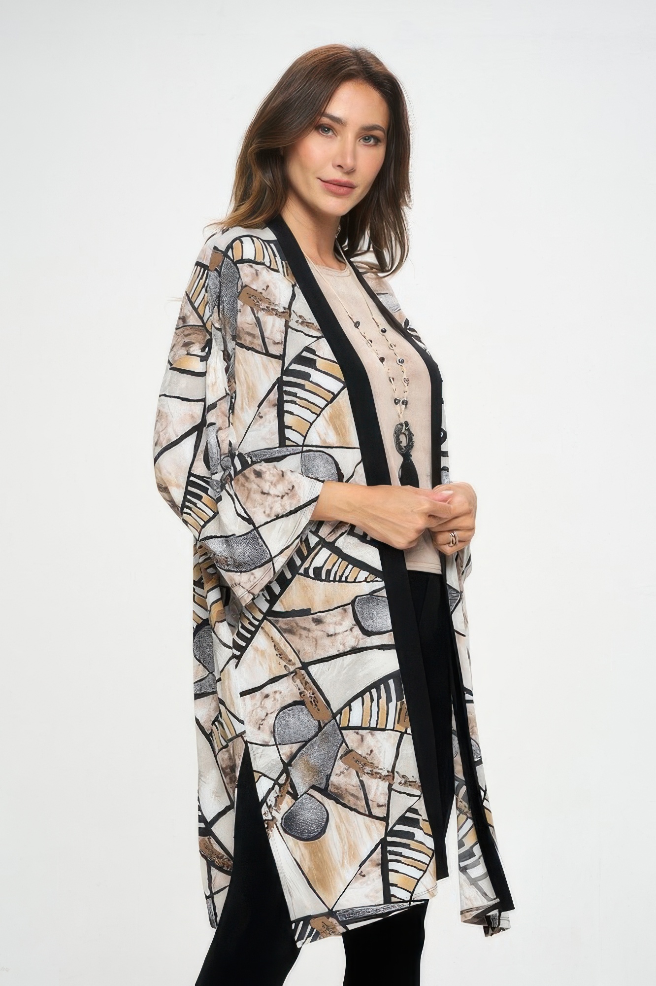 Make a polished impression in this long contrast jacket featuring quarter-length sleeves and functional pockets. The longer silhouette offers flattering coverage, while the soft stretch fabric keeps it light and breathable. Designed with an eye for clean lines and practical details, this jacket is a versatile outer layer. Made in the USA.