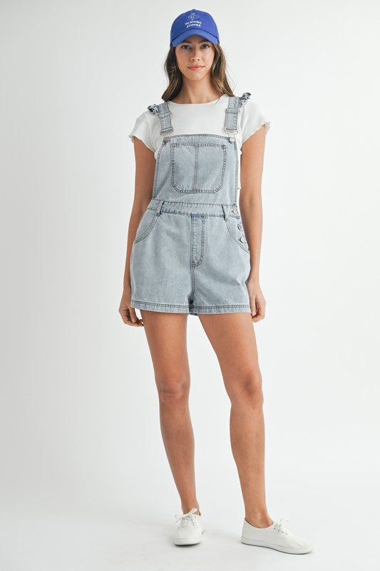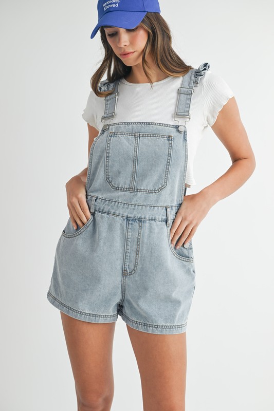 This Square Neck Ruffle Shoulder Denim Overall Romper is a cute and playful outfit that combines denim style with feminine details. The square neck design adds a modern touch, while the ruffle shoulder accents bring a charming and flirty vibe to the romper. Perfect for a casual day out or a fun summer event, this romper is both stylish and comfortable, making it a versatile piece for your wardrobe. Embrace a trendy and effortless look with this denim overall romper.