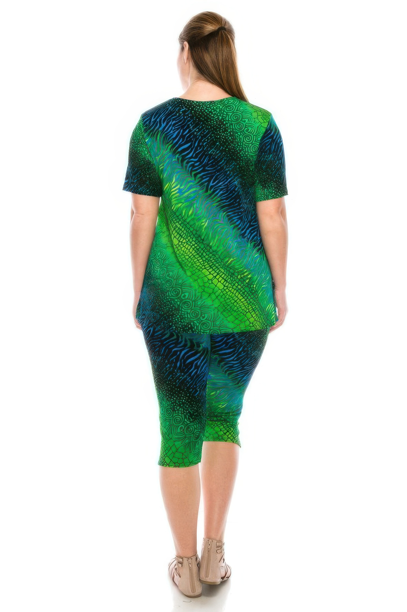 This plus-size capri set is your go-to for quick, comfortable styling. Designed with an easy pull-on pant and matching sleeveless top, it offers full outfit coordination with minimal effort. The stretch fabric ensures a relaxed fit that’s breathable and ideal for all-day wear. Made in the USA, this set keeps you looking fresh with its wrinkle-resistant finish and flattering silhouette.