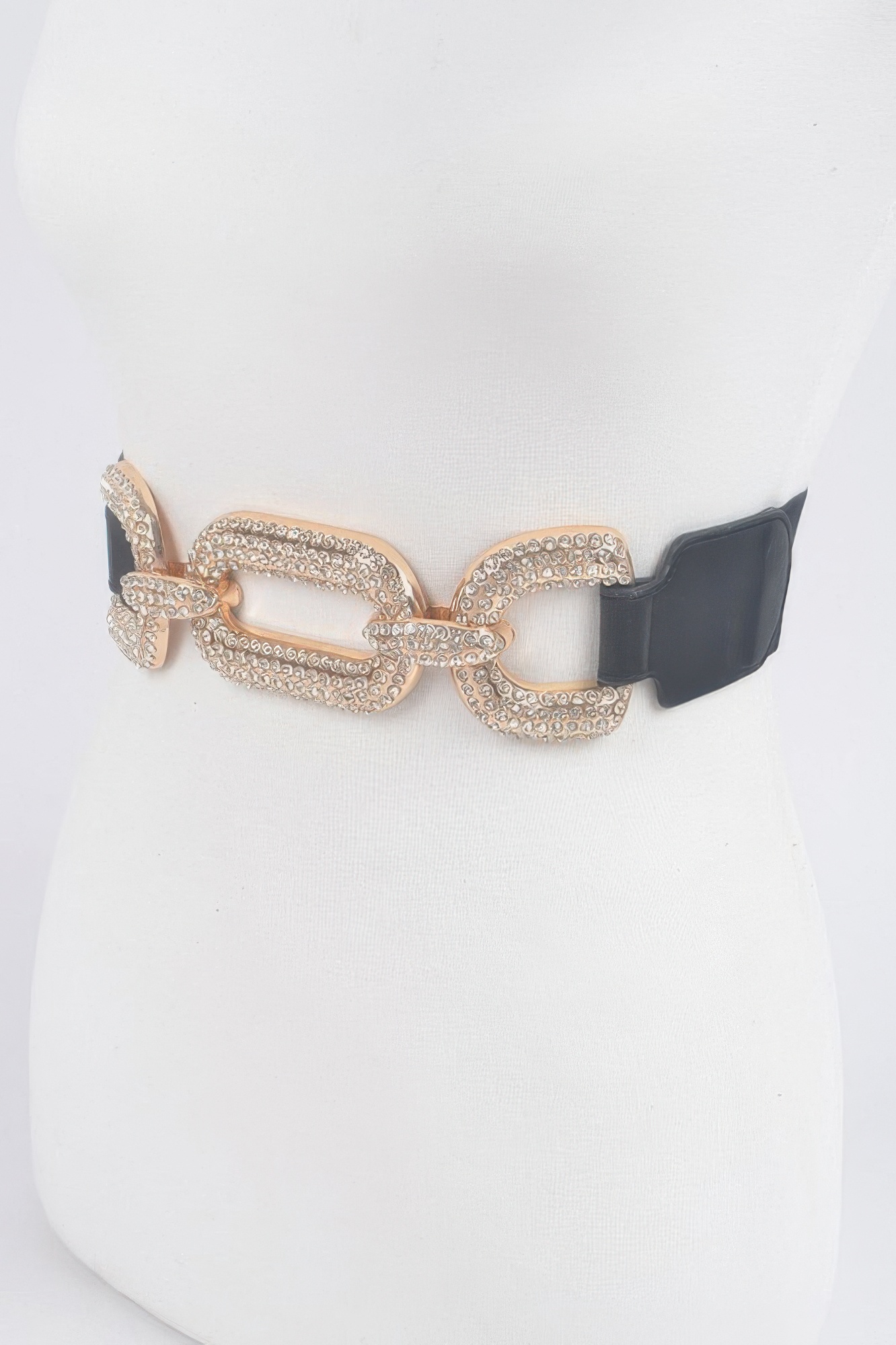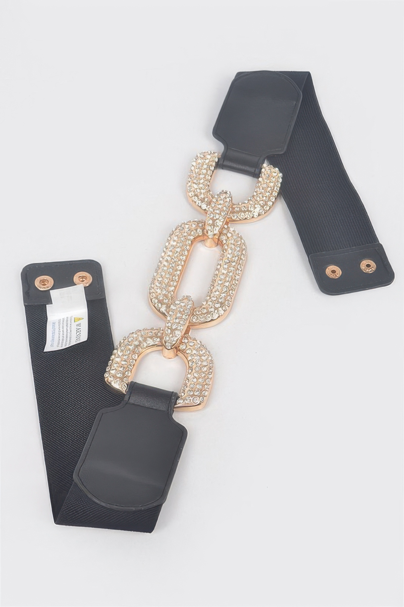 Enhance your outfit with this metal rhinestone elastic waist belt, designed for both comfort and shine. The rhinestone detailing adds a subtle sparkle, while the elastic band ensures a flexible and secure fit. Its sleek profile makes it easy to pair with a variety of looks, from casual dresses to evening wear. The structured metal elements provide durability and a polished finish. A versatile accessory, it offers both function and style.