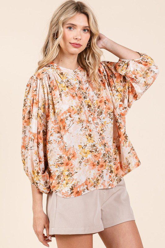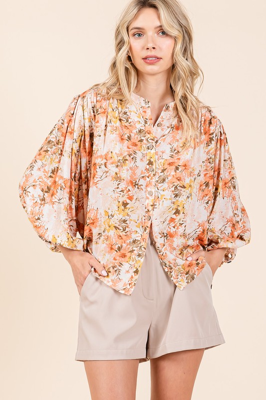 This stylish blouse features a lovely flower print design on soft fabric. The batwing sleeves add a touch of elegance, while the button-down front creates a classic look. Perfect for a casual day out or a relaxed evening, this blouse will make a versatile addition to your wardrobe. The flowy silhouette offers a comfortable and flattering fit for all body types. Pair it with jeans for a chic and effortless outfit, or dress it up with a skirt for a more polished look. Stand out in style with this beautiful and trendy blouse!
