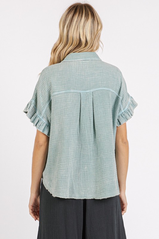Mittoshop Mineral Washed Button Down Flounce Sleeve Shirt