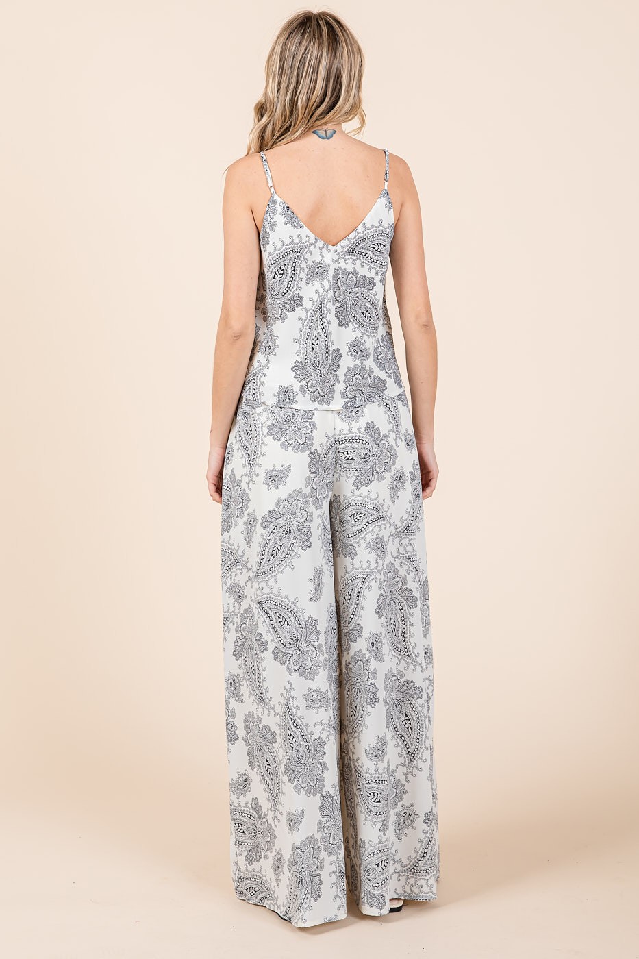 The Paisley Print Cami and Pants Set is a trendy and stylish outfit option. Featuring a paisley print design, this set offers a bohemian and chic look. The cami top adds a touch of femininity, while the matching pants create a coordinated ensemble. Wear this set with sandals for a laid-back and fashionable outfit perfect for a day out or a casual event.