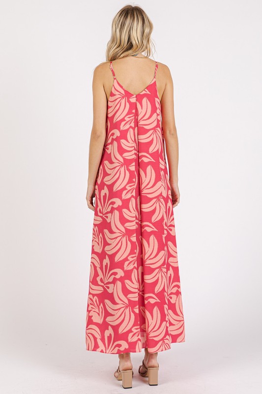 The Printed V-Neck Maxi Cami Dress with Pockets is a versatile and chic dress that combines style and functionality. With a flattering V-neckline and a maxi length, this dress is perfect for a variety of occasions. The addition of pockets adds practicality and convenience to this fashionable piece, making it a must-have in your wardrobe. Whether you dress it up with heels or keep it casual with sandals, this dress is sure to make a statement.