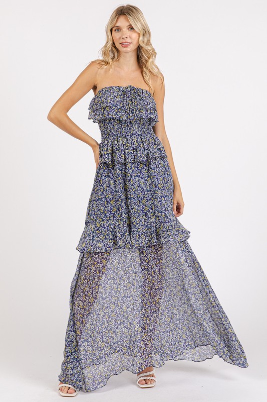 The Ruffled Smocked Floral Halter Neck Maxi Dress is a stunning and feminine piece that exudes effortless elegance. Featuring a halter neckline with ruffled detailing, this dress offers a romantic and chic look. The smocked waist adds definition and flatters the figure, while the floral print adds a touch of whimsy and charm. Perfect for special occasions or a casual day out, this maxi dress is sure to turn heads wherever you go.
