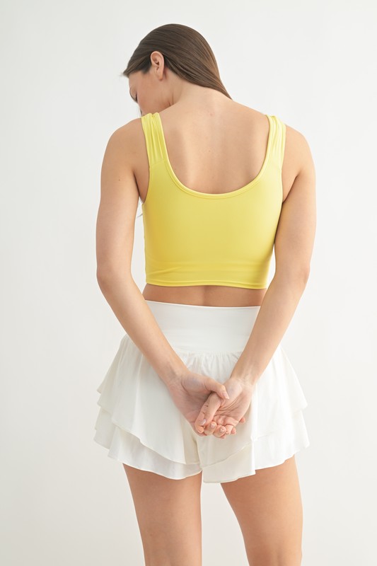 he Ruched Front Active Tank is a stylish and functional activewear top designed to provide both comfort and style during workouts. The ruched front detailing adds a fashionable and flattering touch to the tank, creating visual interest and enhancing the silhouette. Made from a breathable and moisture-wicking fabric, this tank top helps keep you dry and comfortable during exercise. The sleeveless design and relaxed fit allow for ease of movement, making it suitable for various activities such as yoga, running, or weight training. Whether you're working out at the gym or going for a jog in the park, the Ruched Front Active Tank combines performance and style to elevate your activewear wardrobe.
