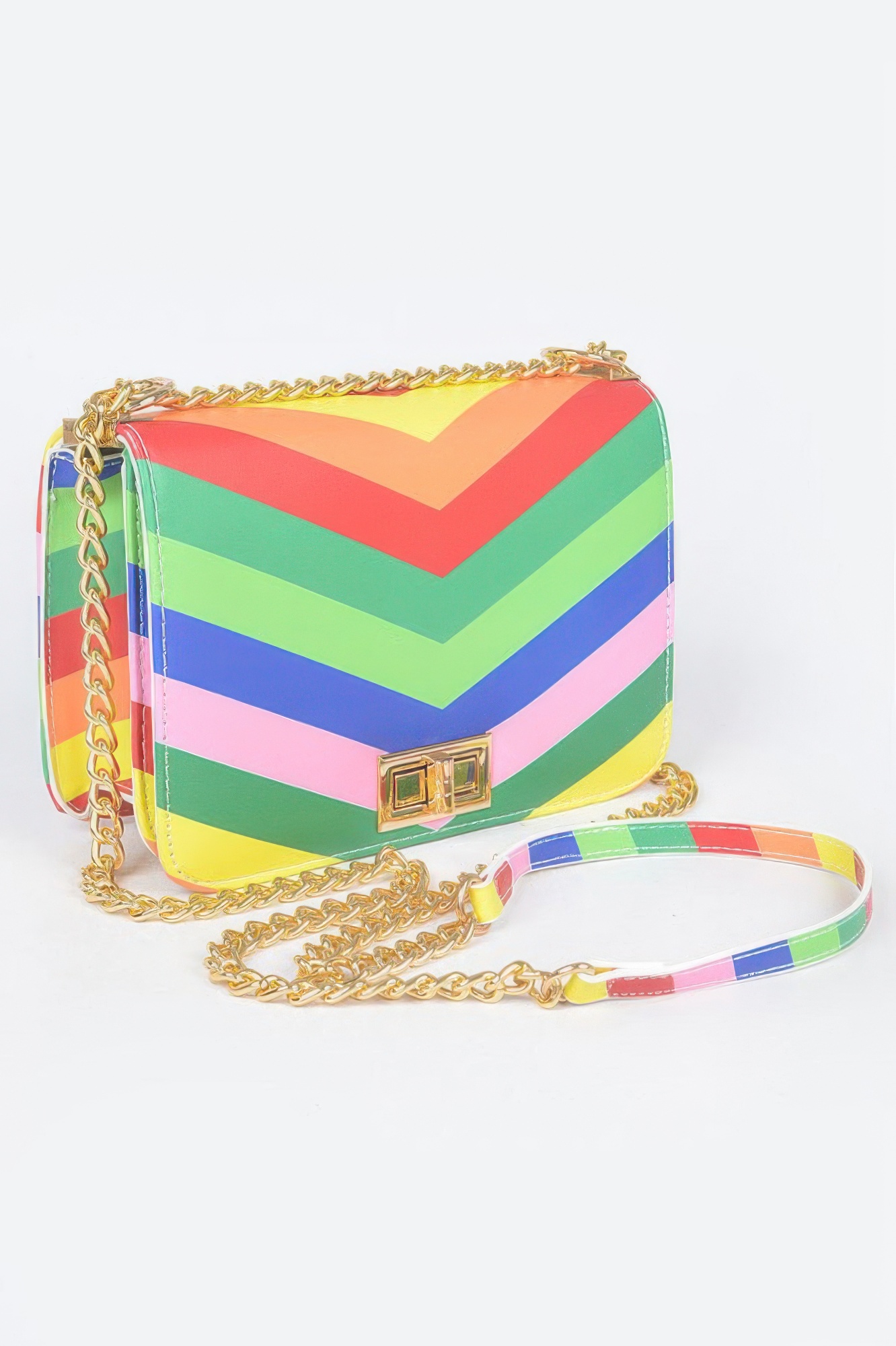 This multi color flap chain shoulder bag adds vibrant style with a polished edge. Designed with a structured flap closure, it offers both security and visual appeal. The chain strap enhances the silhouette with a refined finish. Compact sizing keeps essentials organized without added bulk. Multi color detailing adds personality to any outfit. Durable construction ensures reliable everyday use. A statement accessory designed for standout styling.