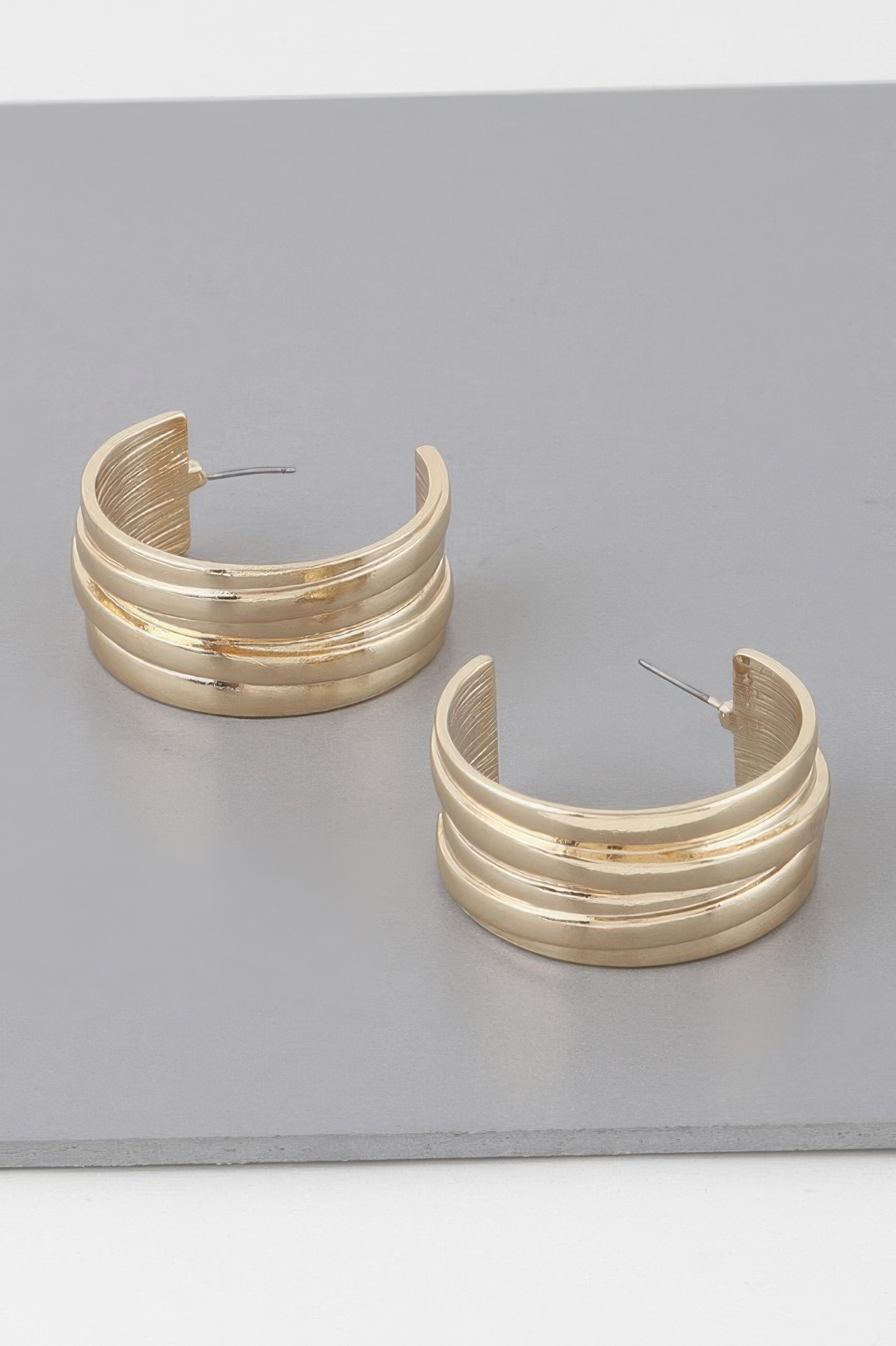 Refined with a twist, the Multi Lined Hoop Earrings feature a layered line texture that updates the classic hoop. Compact in size but big on detail, these earrings deliver just enough shine and structure for everyday polish. Lightweight and versatile, they pair effortlessly with everything from workwear to weekend outfits. A modern staple for minimal styling with edge.