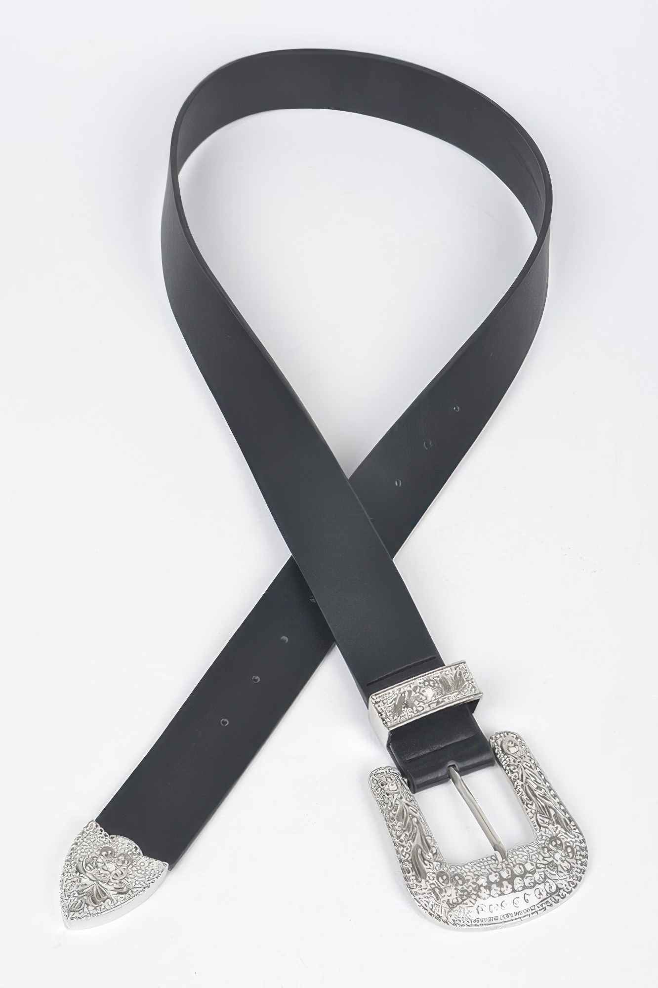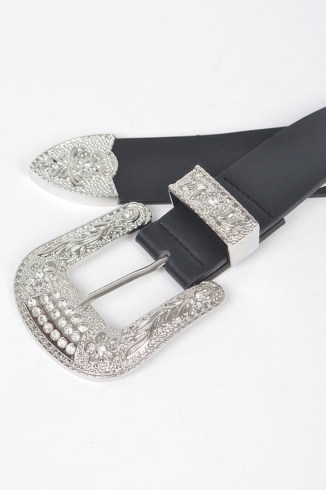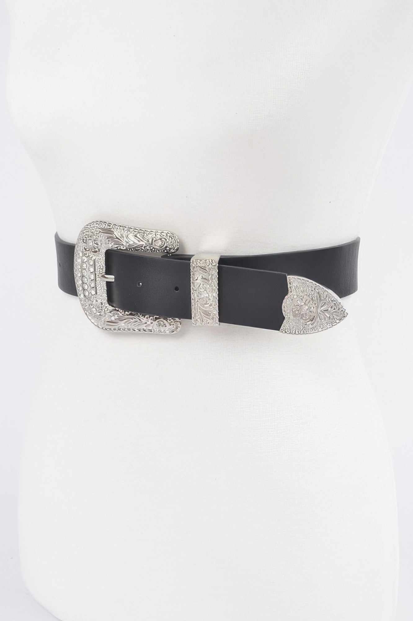Elevate your waistline with the Multi Metal Belt, a sleek blend of shine and structure. Featuring mixed metallic elements and a smooth polyurethane base, this belt brings modern edge to any outfit. Its versatile width works beautifully with both jeans and dresses, offering instant polish and personality. A standout accessory for adding contrast and style to minimalist or monochrome looks.