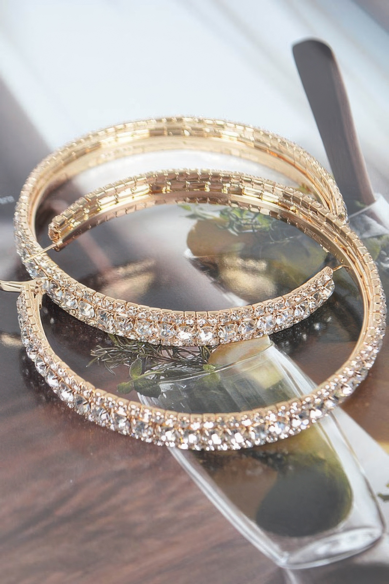 The Multi Rhinestone 80mm Hoop Earrings deliver bold sparkle with a classic hoop silhouette. Designed with shimmering rhinestones set along the entire hoop, these earrings catch the light beautifully from every angle. The oversized design creates a striking statement while still maintaining a sleek and elegant appearance. Perfect for adding glamour to everyday outfits or enhancing evening looks, these hoops bring instant shine to any style. Despite their bold size, the lightweight construction ensures comfortable wear throughout the day or night. Their timeless hoop design makes them easy to pair with both casual and formal ensembles. These earrings are the perfect accessory for anyone who loves statement jewelry with dazzling detail.