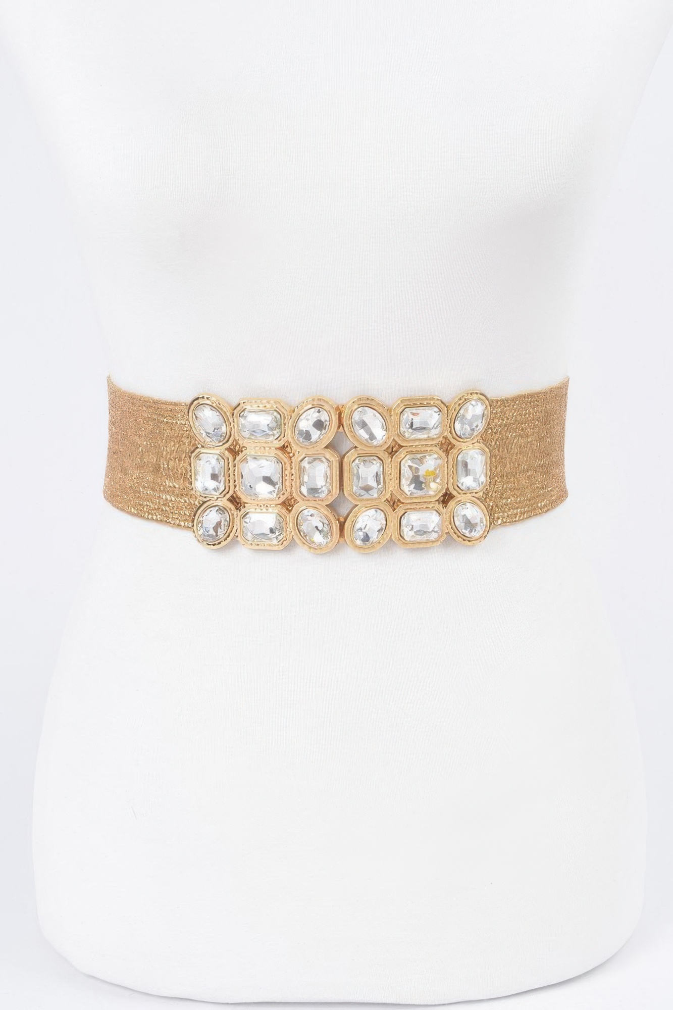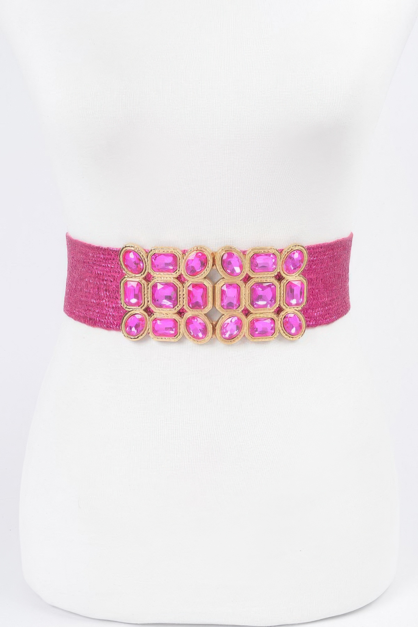 Elevate your ensemble with the Multi Stone Metallic Straw Stretch Belt, a luxurious blend of texture and sparkle. Featuring a woven metallic straw design adorned with glimmering rhinestone embellishments, this belt adds an instant touch of sophistication to any look. The elastic construction ensures a comfortable, flattering fit, making it as practical as it is stylish. Whether worn with a flowing dress or a tailored outfit, this belt brings statement-making elegance to both casual and formal occasions.