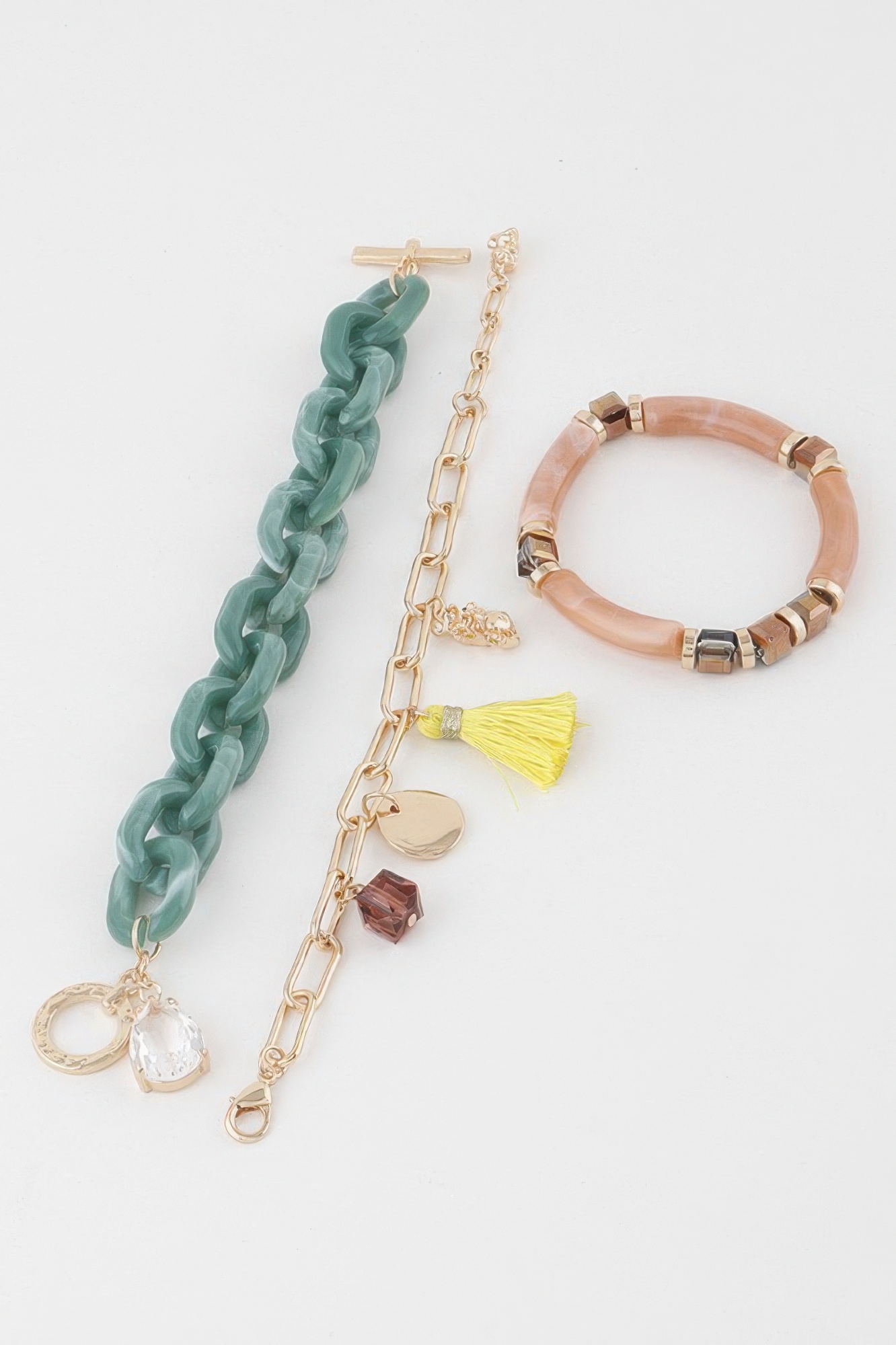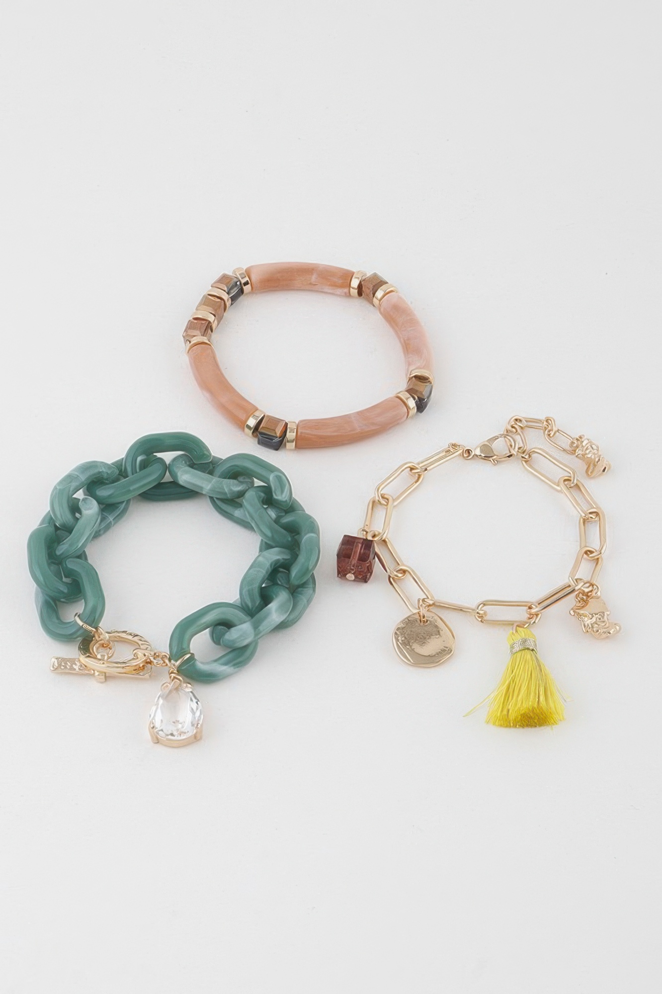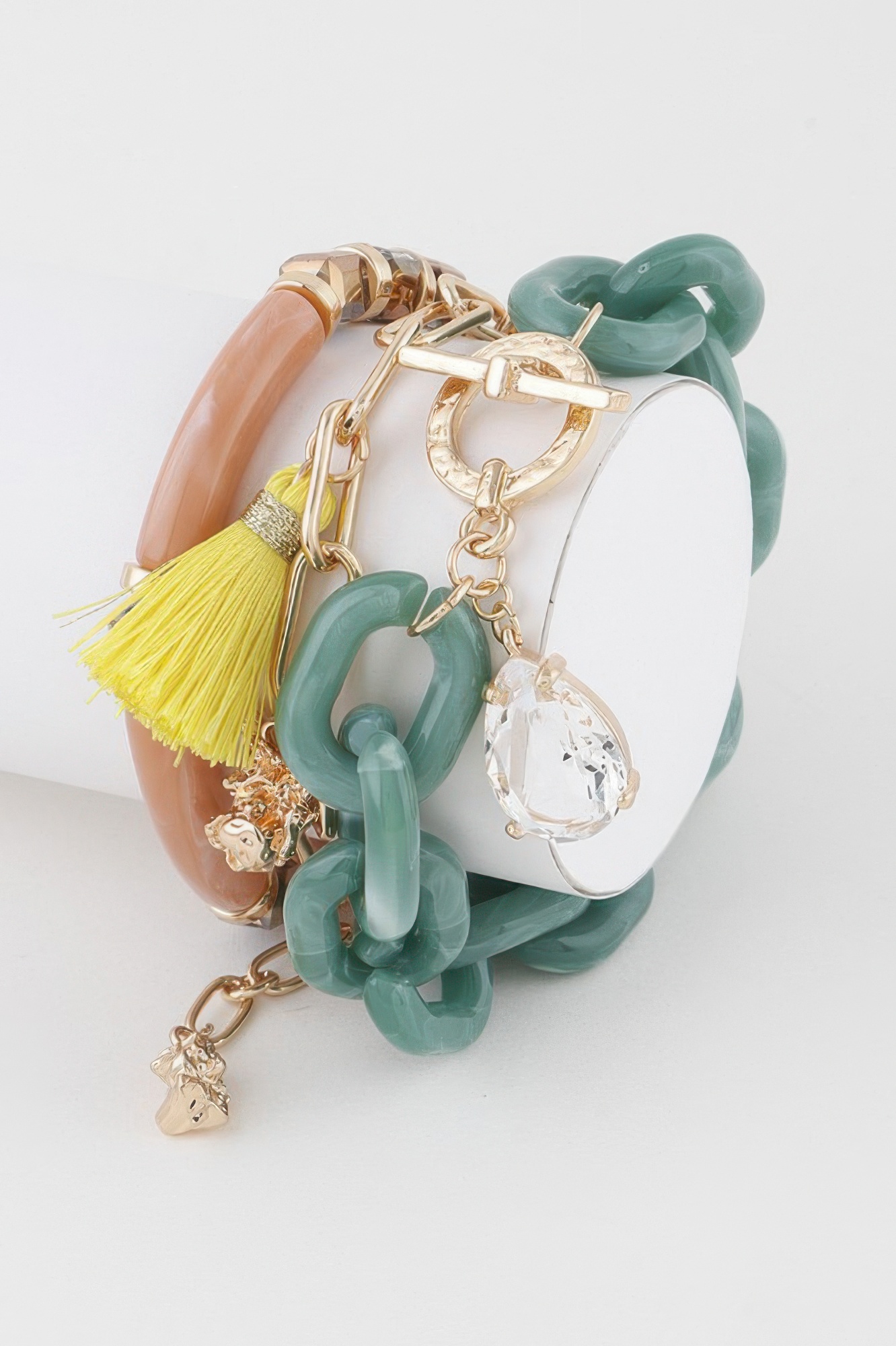 Add movement and texture to your look with this multi tassel pendant bracelet. Designed with delicate tassel accents, it creates a dynamic and eye-catching effect. The compact structure ensures a comfortable fit while maintaining a stylish presence. Its versatile design allows it to complement both casual and elevated outfits. A unique accessory, it brings a playful yet refined finish to your collection.