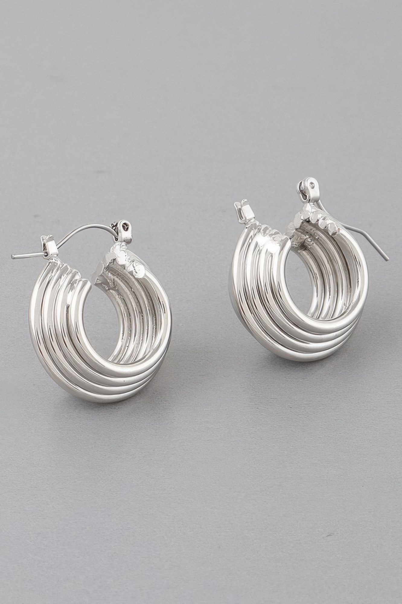 The Multi Tube Hoop Earrings offer a bold layered look in a compact silhouette. Designed with multiple tubular bands forming a single hoop, they create depth and modern dimension. Their smaller size makes them easy to wear while still delivering standout style. Lightweight and versatile, they pair effortlessly with both casual and elevated outfits. A contemporary staple with structured appeal.
