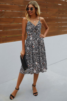 Choose Options V Neck Spaghetti Strap Leopard Cut Out Midi Dress MSRP: Was: Now: $34.99 Product Description: This V-neck spaghetti strap leopard cut out midi dress brings a fierce and fash…