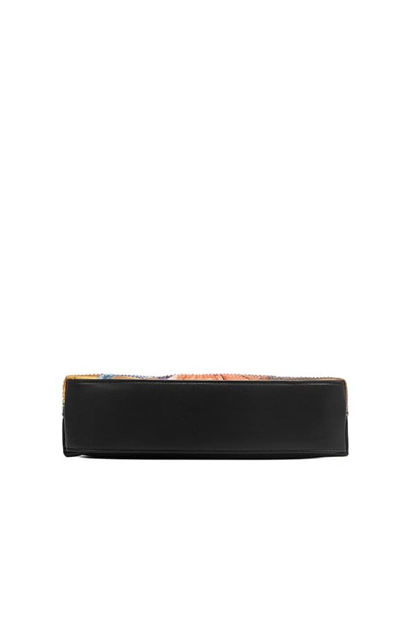 - Pebbled vegan leather exterior