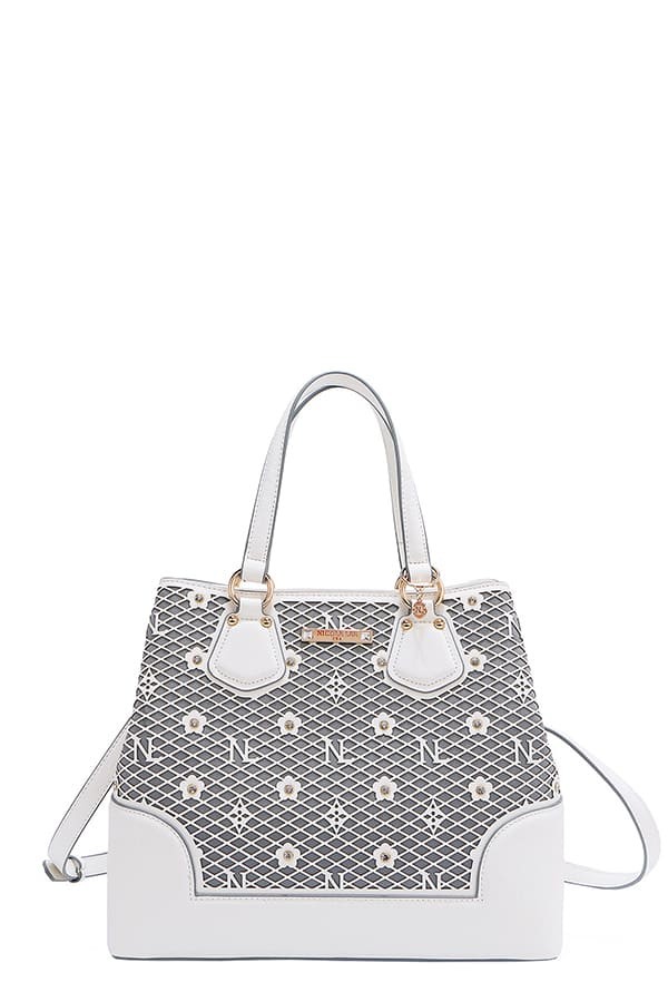 Command the room with the Gracie signature tote, a sophisticated carryall that exemplifies precision craftsmanship. Featuring our iconic laser-cut monogram pattern with elevated rhinestone embellishments, this spacious design redefines the classic tote with a fresh, contemporary edge. Whether you’re commuting or jet-setting, this tote makes a bold yet refined statement.