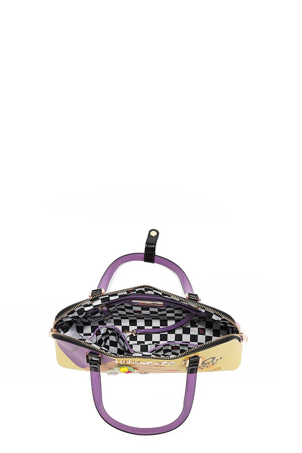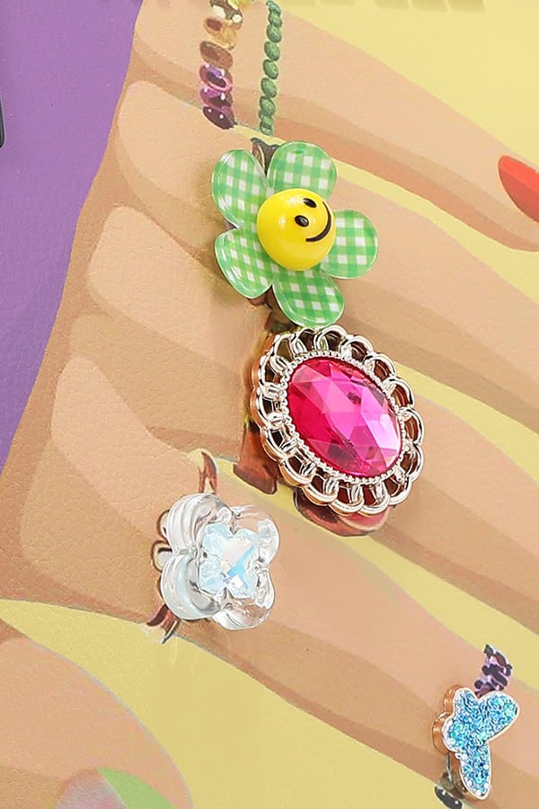 The Nail Polish dome shoulder bag is a statement piece that combines curvy, cute, and couture-inspired nail art for a glossy-finish energy. The retro dome silhouette adds a touch of nostalgia, while the hand-painted-inspired print and 3D detailing bring a playful and artistic vibe. This bold accessory is all about sparkle and adding a touch of glam to your outfit. Embrace the vibrant energy and make a stylish statement with this eye-catching and unique bag.