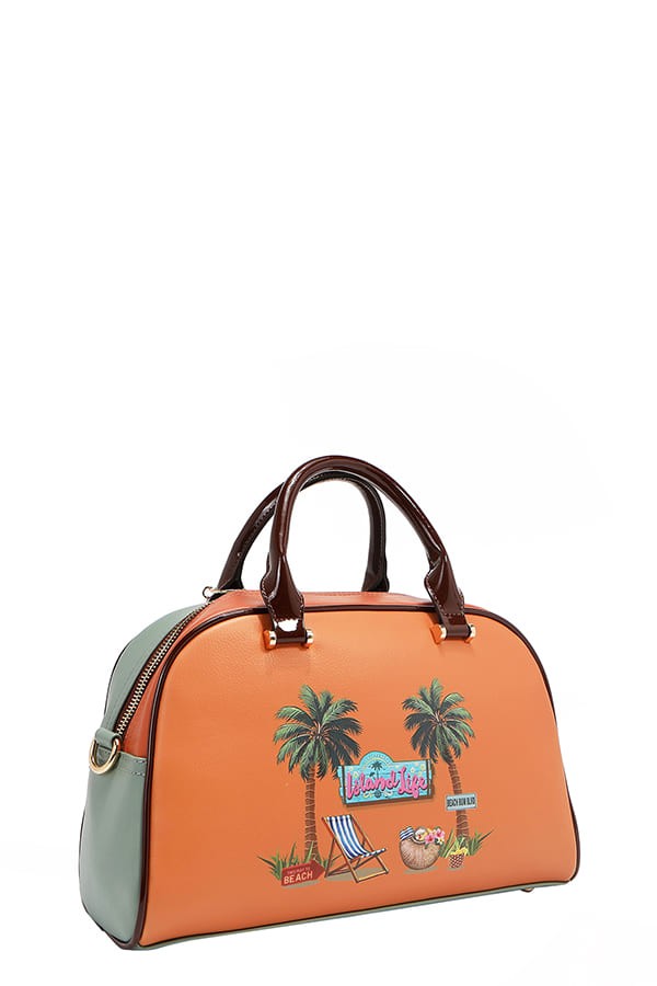 Catch the summer glow with our Sun & Sand Dome Bag, your sunny sidekick featuring breezy palms, cozy hammocks, and all the island magic to make every day feel like a beach getaway! .