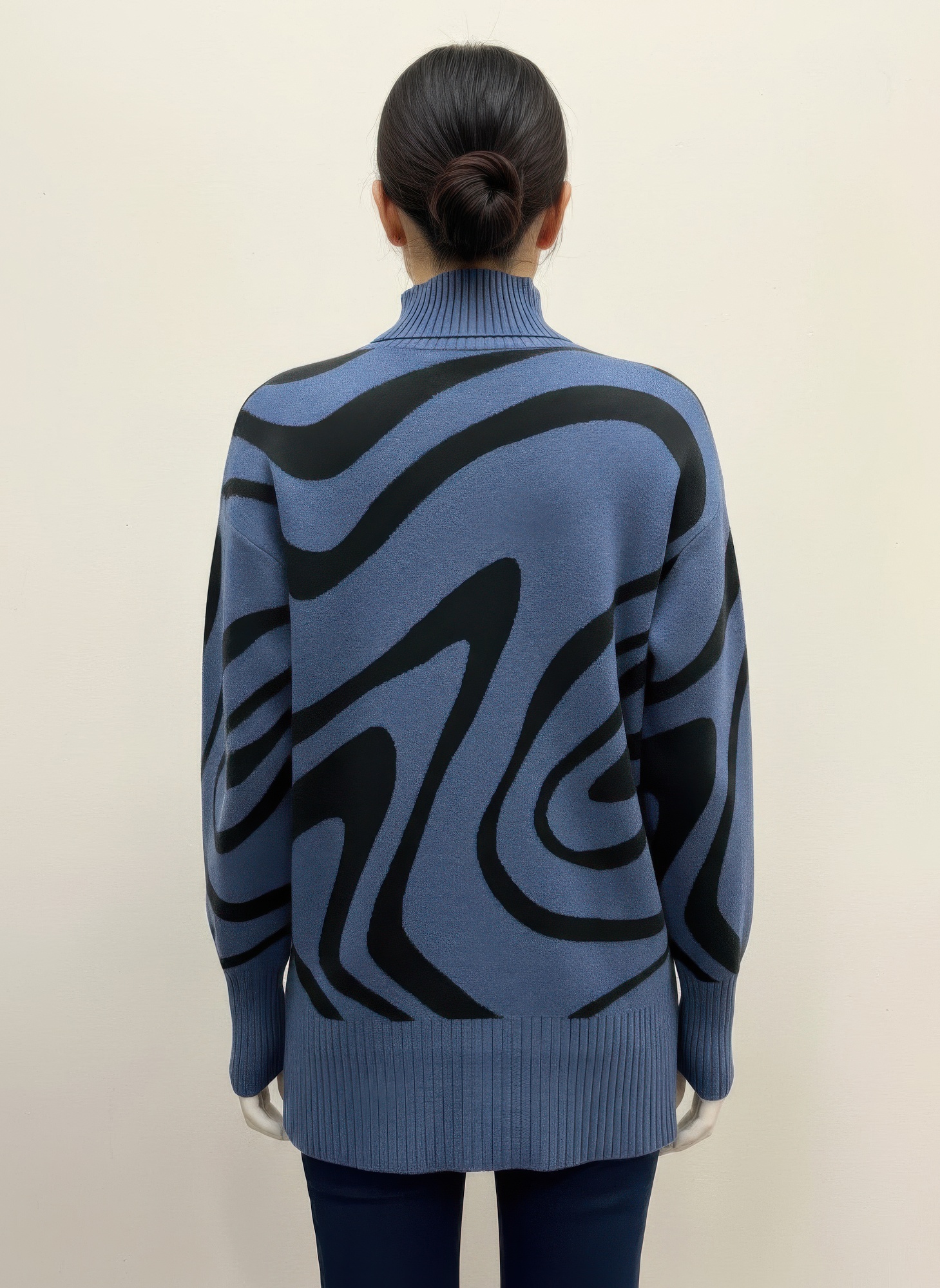 The Ninety Printed Sweater brings elevated texture and modern flair to your cold-weather lineup. Designed with a swirl jacquard pattern, this pullover tunic sweater features a cozy mock neck and long sleeves for seasonal warmth. The longer length offers added coverage and pairs effortlessly with leggings or slim-fit denim. Crafted from a soft rayon blend, it delivers a comfortable, flattering drape with just the right touch of structure. A stylish staple for polished everyday wear.