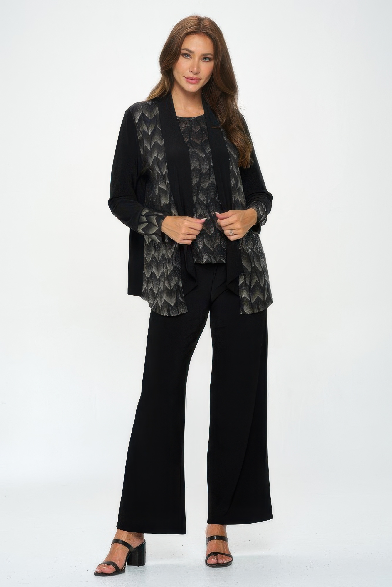 Make a statement in this stunning foil sequin contrast jacket. With metallic detailing along the sleeves and a clean, structured lapel, it strikes the perfect balance between shimmer and sophistication. The lightweight fabric blend ensures ease of movement, while the tailored fit flatters every shape. Pair it with the coordinating foil tank or wear it solo over sleek basics. Crafted in the USA, it brings modern glamour to your wardrobe.