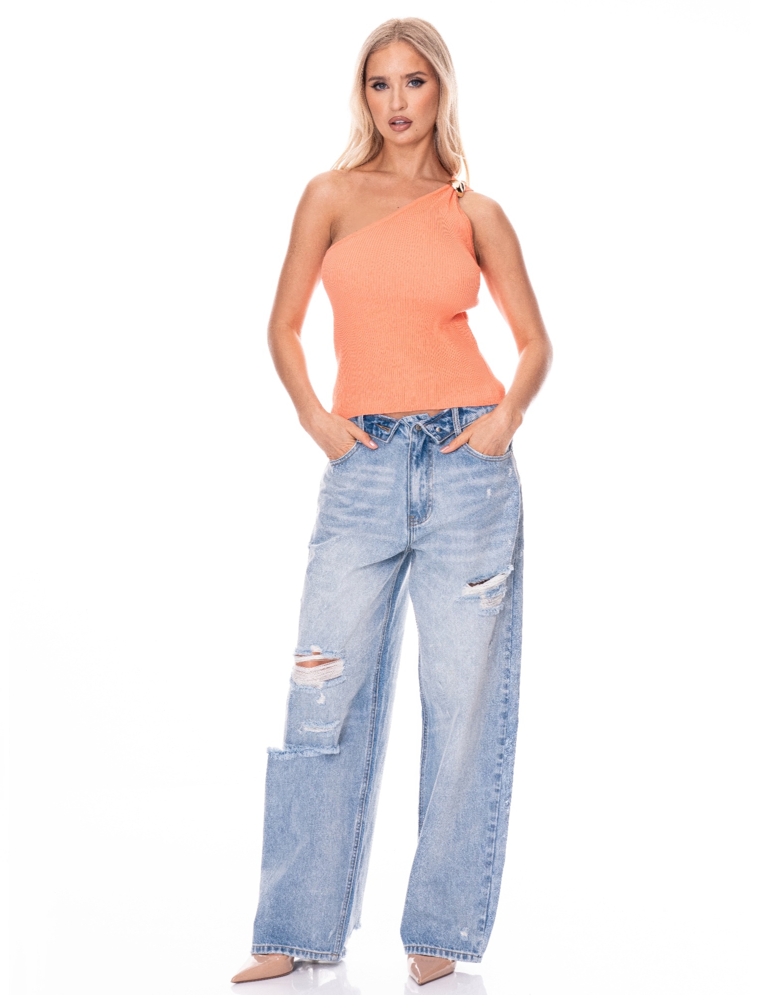Chic and effortlessly modern, this one shoulder top is designed to bring a sleek statement to your everyday and evening wardrobe. Featuring an asymmetrical neckline, it creates a bold yet elegant silhouette that highlights the shoulders beautifully. Its clean, minimal design makes it easy to style while still feeling fashion-forward. The fitted shape offers a flattering look that pairs seamlessly with both casual and dressy pieces. Perfect for nights out, special occasions, or elevated everyday styling, this top adds instant sophistication to any outfit. Simple, versatile, and striking, it’s a must-have staple for a polished wardrobe.