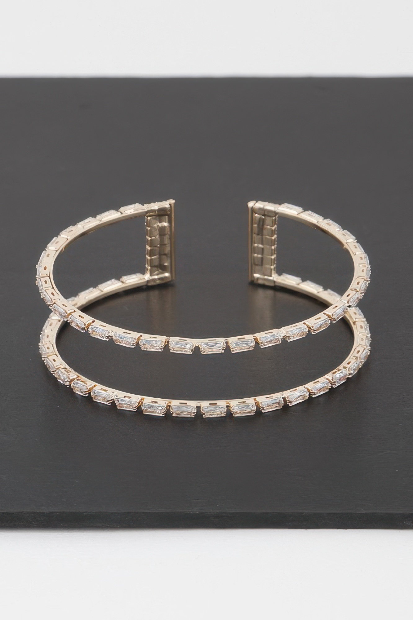 Sleek and radiant, the Open Crystal Cuff Bracelet adds a refined sparkle to your accessory collection. Designed with an open silhouette, this cuff features crystal-embellished ends that catch the light with every movement. The minimalist design offers a touch of elegance without overpowering, making it perfect for both everyday wear and special occasions. Lightweight and easy to slip on, it brings effortless polish to any look. Whether worn solo or layered, it’s a modern classic with a hint of glam.