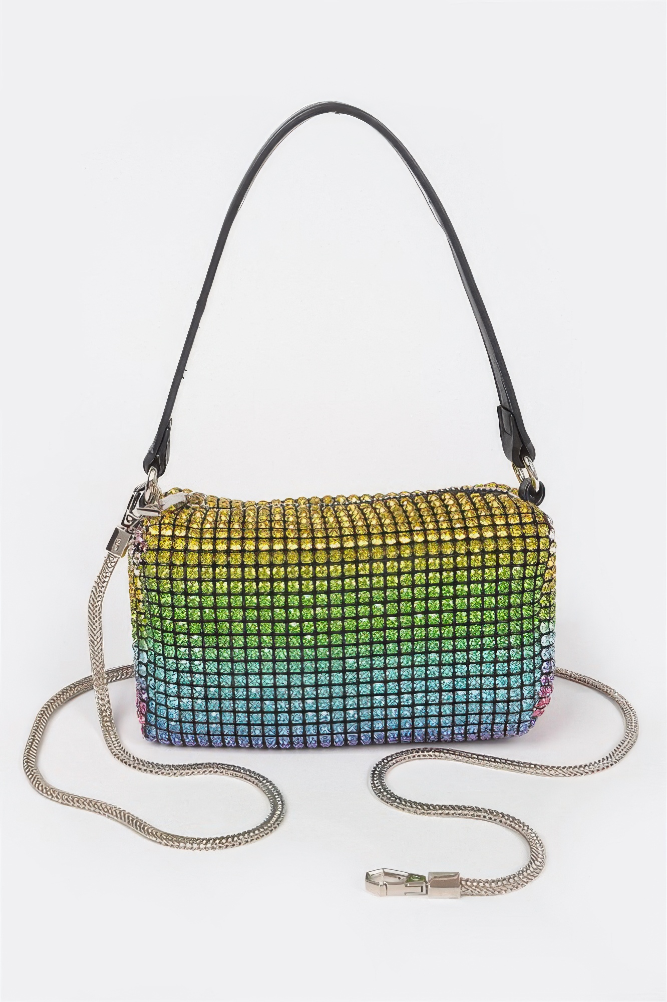 The Oversized Rhinestone Clutch adds undeniable glamour to any ensemble. Its sleek rectangular silhouette is fully adorned with sparkling stones, creating a refined and radiant accessory perfect for evening wear.