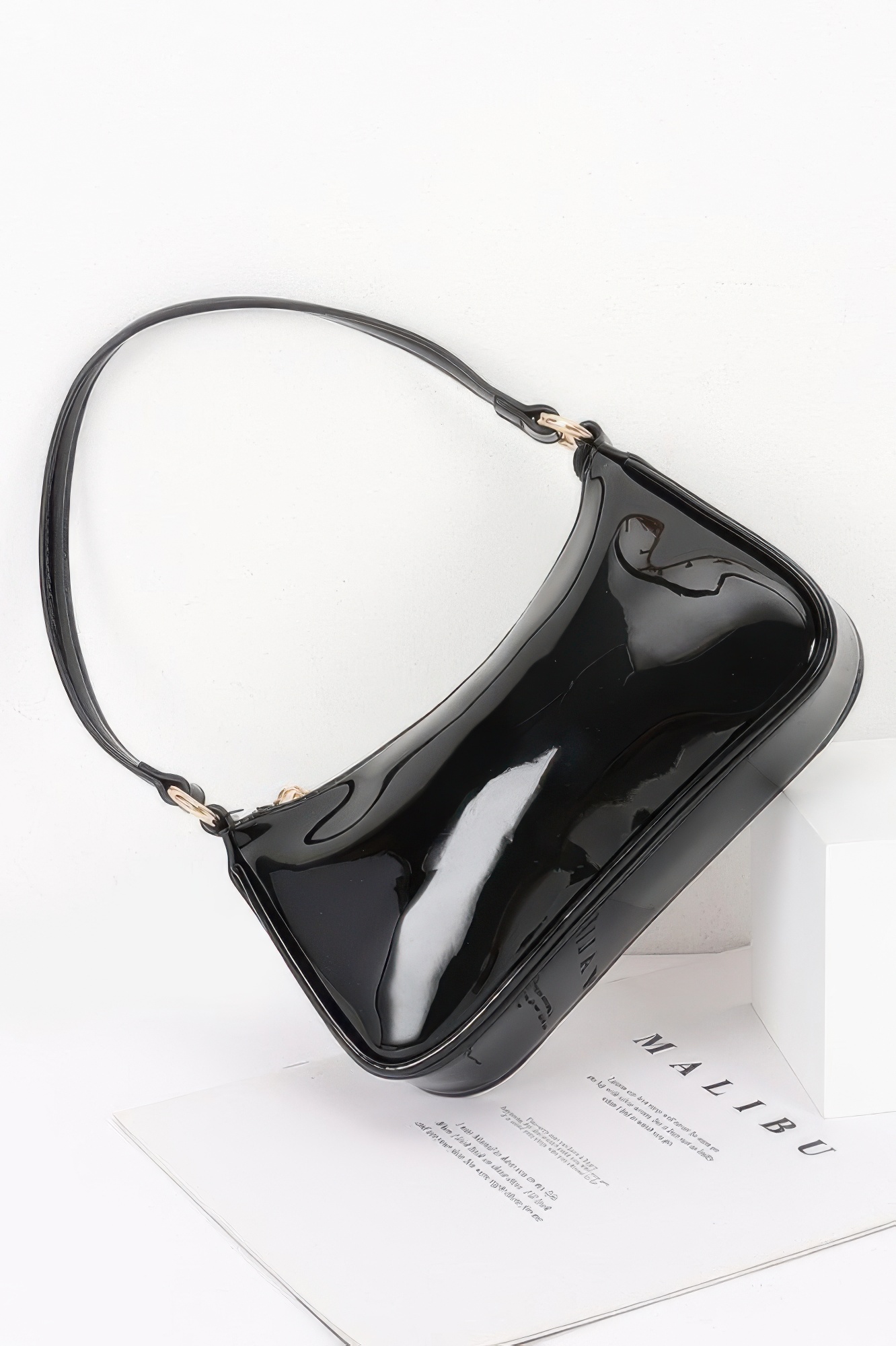 Compact, sleek, and endlessly chic, the Patent Vegan Leather Chain Shoulder Bag adds a polished finish to your everyday wardrobe. Featuring a high-gloss patent surface and a modern chain strap, this piece delivers contemporary sophistication in a streamlined form. The structured silhouette keeps your essentials secure while enhancing your overall look with its refined edge. Ideal for workdays, dinners, or city strolls, it offers effortless versatility in a compact design.