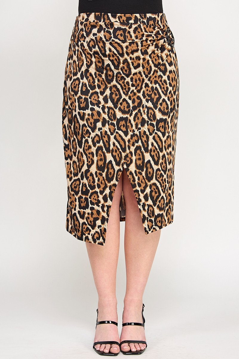 The Plus Leopard Print Asymmetric Skirt with Buckle is a standout piece designed to accentuate your curves while delivering a bold fashion statement. This plus-size skirt features a flattering elastic waist and an eye-catching draped design that flows elegantly with every step. The buckle trim at the side adds a hint of modern edge, while the front overlap drape and asymmetric hemline create a dynamic and sophisticated silhouette. Made from a comfortable blend of 95% polyester and 5% spandex, this skirt ensures a perfect balance of stretch and support. Whether paired with a fitted top or a flowy blouse, it brings a touch of confidence and style to any occasion.