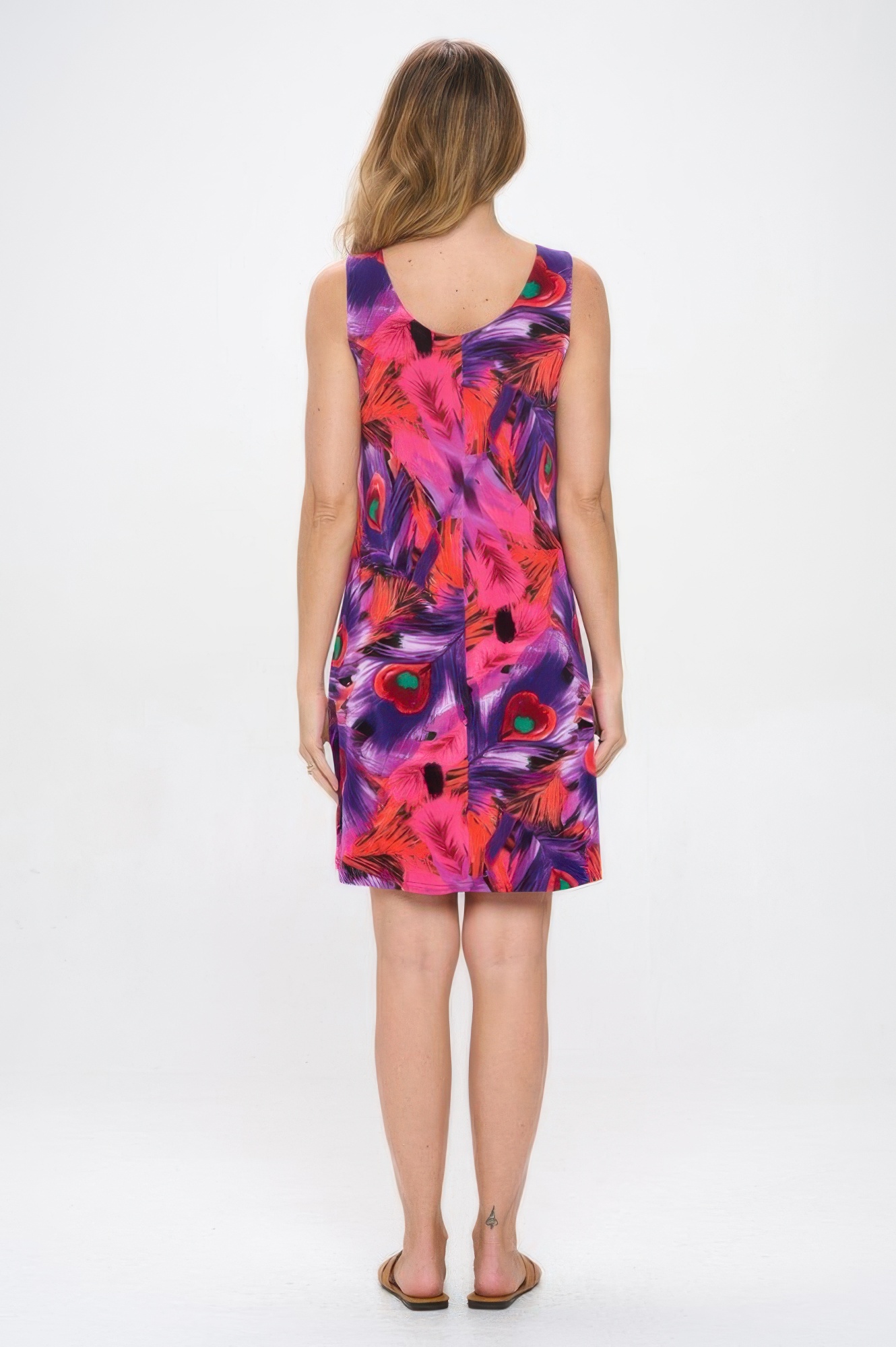 This plus-size tank dress is a warm-weather staple, blending comfort with confidence. Its sleeveless cut and relaxed fit offer breezy ease, while the stretch fabric skims the body without clinging. A lively print adds personality, making it perfect for casual days or vacation looks. Made in the USA, it’s a go-to option for when you want to look pulled together with minimal effort.