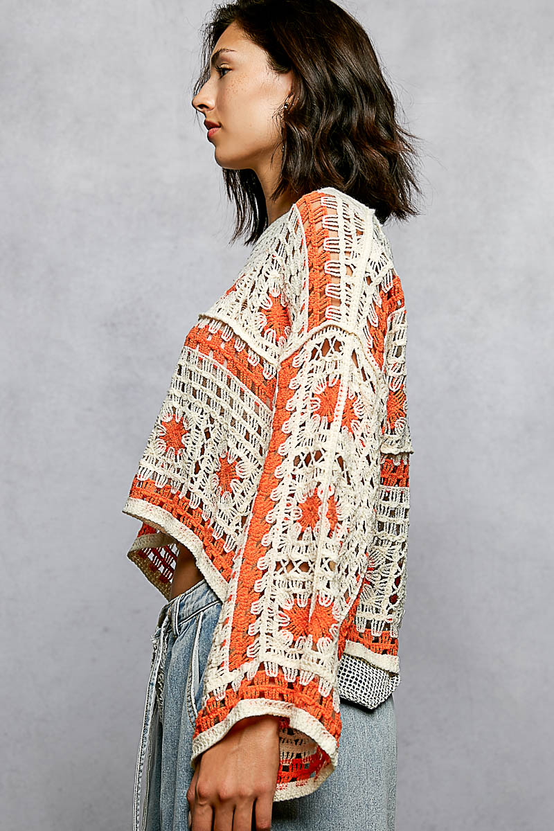 The Boat Neck Long Sleeve Crochet Top with Granny Square Weaving is a charming and stylish piece that exudes bohemian vibes. The boat neck adds a touch of elegance to the top. The crochet detailing with granny square weaving gives it a unique and handmade feel. With long sleeves, it is perfect for transitional weather. Embrace a boho-chic look with this intricately designed and eye-catching crochet top!