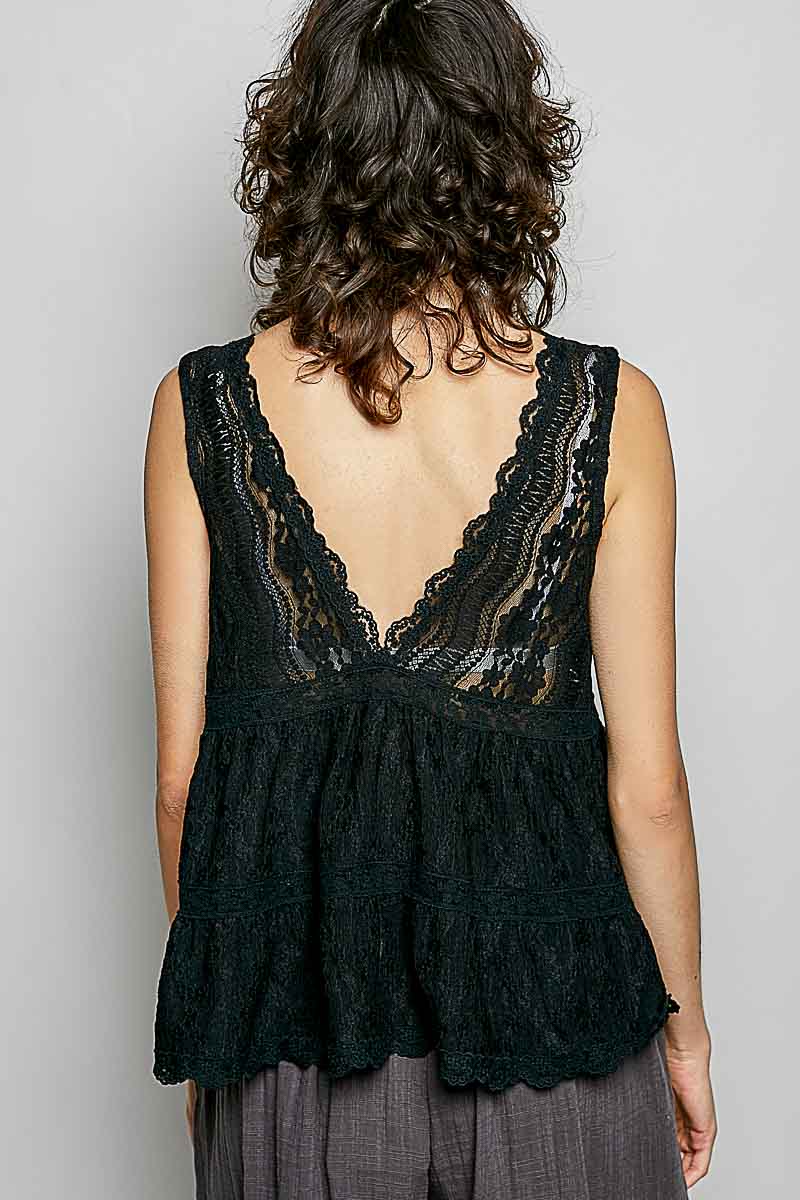 The delicate lace sleeveless top exudes an elegant and feminine charm with its relaxed, flowy silhouette and deep V-neckline. The scalloped lace trim adds a touch of sophistication to the design. Featuring a softly tiered bodice and intricate lace detailing, this top showcases intricate craftsmanship and attention to detail. Its lightweight drape enhances its graceful movement and adds to its overall elegance. Perfect for layering or wearing on its own, this top is a versatile and chic option for various occasions.