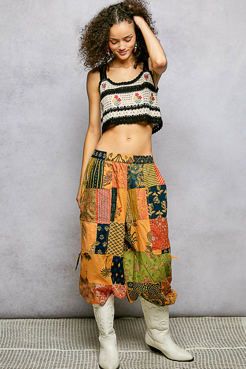 POL Floral Embroidered Cropped Crochet Cami with Scalloped Hem