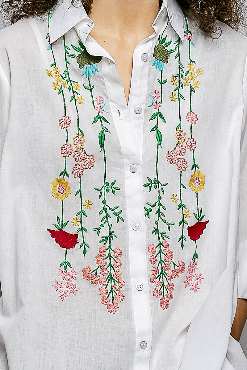 The half sleeve shirt top is crafted from cotton and features beautiful trailing embroidery for a touch of sophistication. The top undergoes a normal washing process, ensuring easy care and maintenance. The solid color lends a classic and versatile look, while the bold cuffs accent add a modern twist to the design. Perfect for adding a stylish flair to your ensemble, this top can be dressed up or down for various occasions. Pair it with tailored pants for a chic office look or with jeans for a casual weekend outfit.