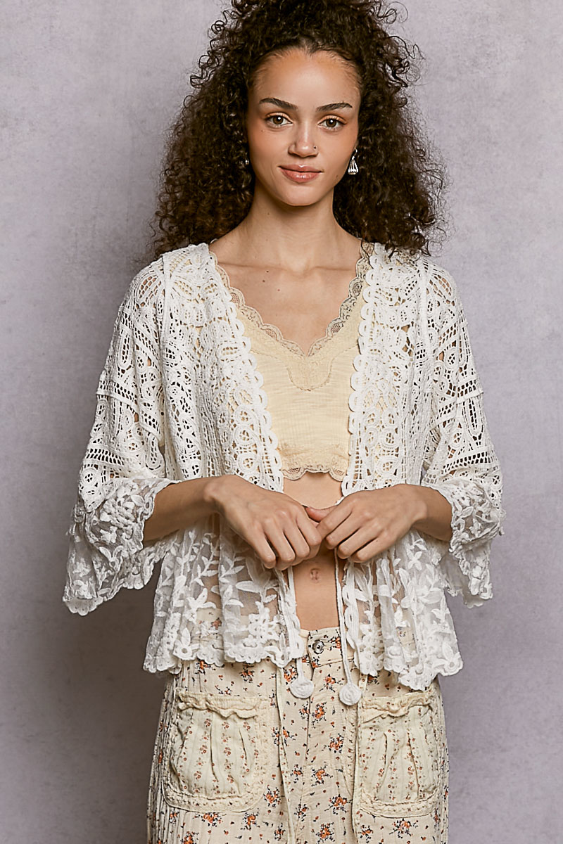 This V-neck Short Sleeve Crochet Cardigan is a fashion-forward piece that combines intricate weave knit patterns with delicate floral lace detailing. The regular fit and short sleeves offer a comfortable and flattering silhouette that is versatile for styling. Perfect for layering over your favorite outfits, this cardigan adds a touch of elegance and texture to any look. The combination of different crochet techniques creates a visually appealing and unique design that stands out. Elevate your wardrobe with this stylish cardigan that exudes sophistication and charm.