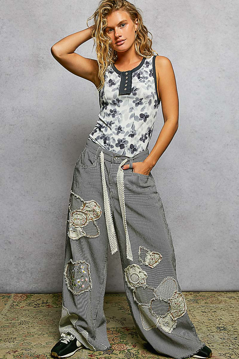 This sleeveless top is designed with a round neck and relaxed fit for a casual and easygoing look. The ribbed fabric adds texture and dimension to the design. A subtle floral pattern brings a touch of femininity and charm to the top. The simple yet elegant style makes it versatile for various occasions. Pair this top with your favorite bottoms for a cute and stylish outfit.