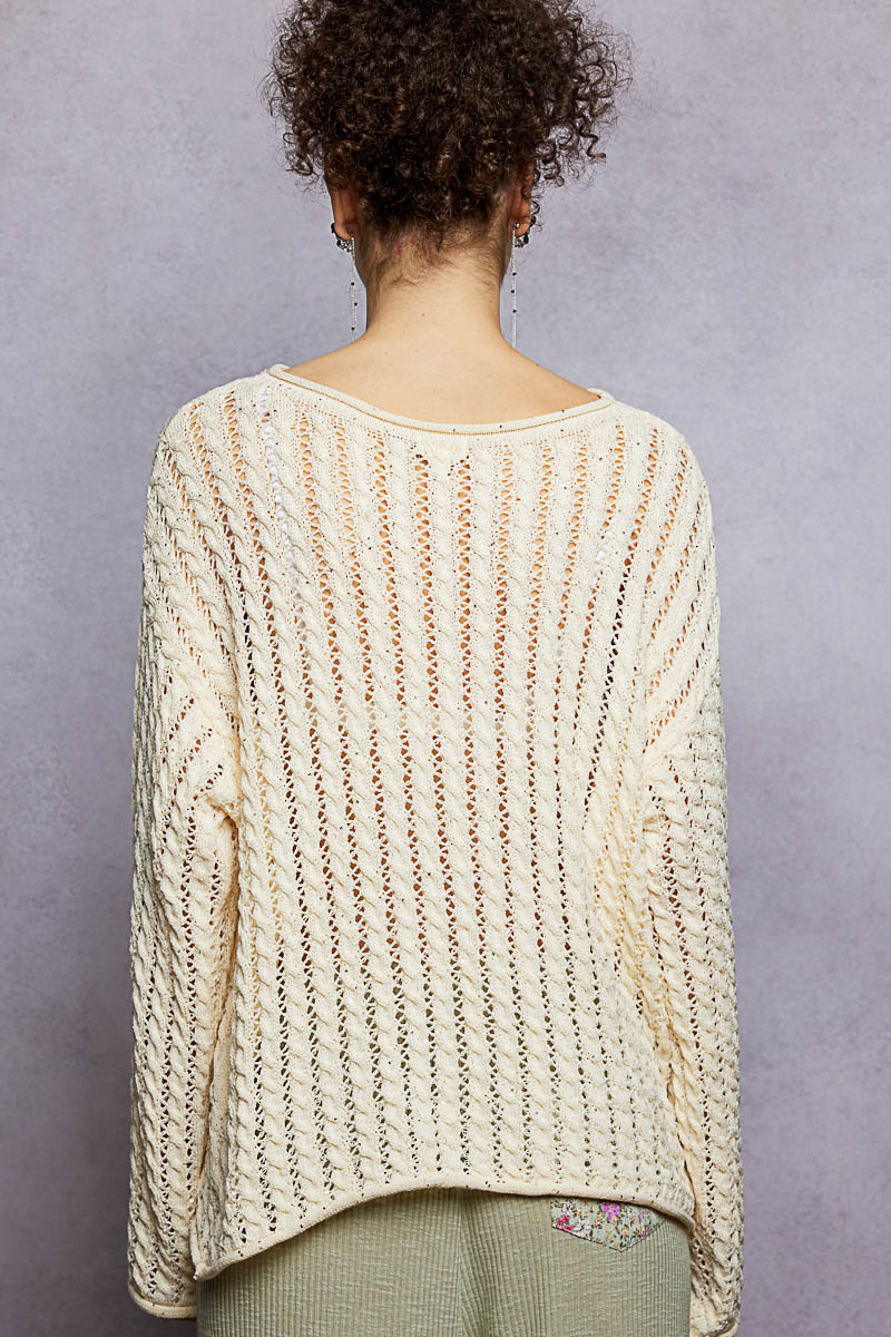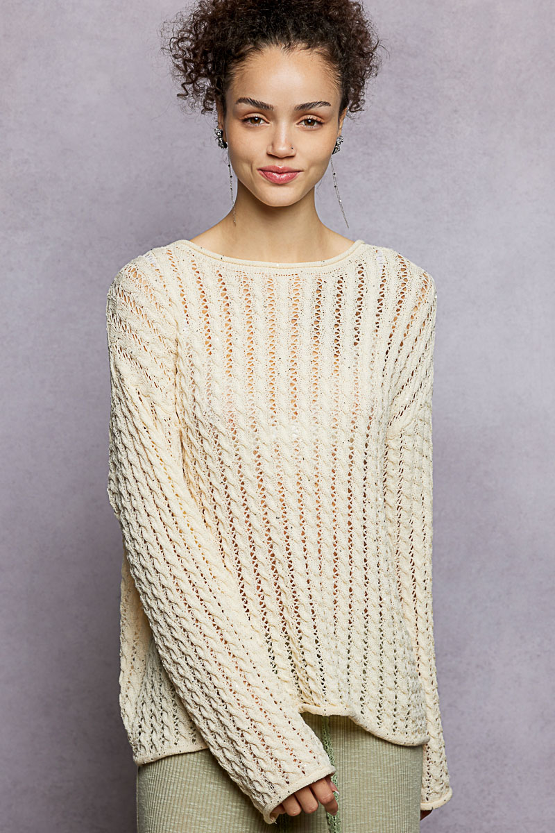 This round neck full sleeve regular fit top is crafted from acrylic sweater material with a unique shiny detail pointed solid pattern. The shiny detailing adds a touch of glamour and sophistication to the overall design. Perfect for any occasion, this top offers a stylish twist on a classic silhouette. Elevate your look with this versatile and fashion-forward top that combines comfort with a hint of sparkle. Embrace effortless style with this chic and eye-catching sweater top that is sure to make a statement.