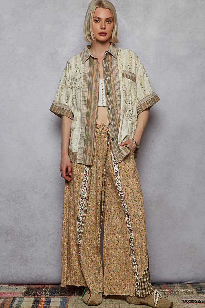 Make a bold statement with this printed button-down patchwork short sleeve shirt. The eye-catching design combines various patterns and colors for a unique and stylish look. Perfect for a casual day out or a fun event, this shirt will set you apart from the crowd. The button-down style adds a classic touch, while the patchwork detail adds a modern twist. Stand out in style and showcase your personality with this Printed Button Down Patchwork Short Sleeve Shirt.