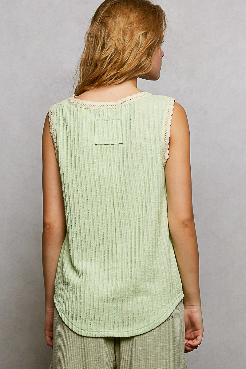 This round neck sleeveless top features a textured rib fabric and a regular fit for a classic yet stylish look. The high-low length adds a modern twist to the design. The trim neck and armhole lines provide a polished and structured finish. With normal washing care, this top is easy to maintain and keep looking fresh. The solid color makes it versatile for pairing with various bottoms for different outfit options. Enjoy the comfort and sophistication of this sleeveless top in your wardrobe rotation.