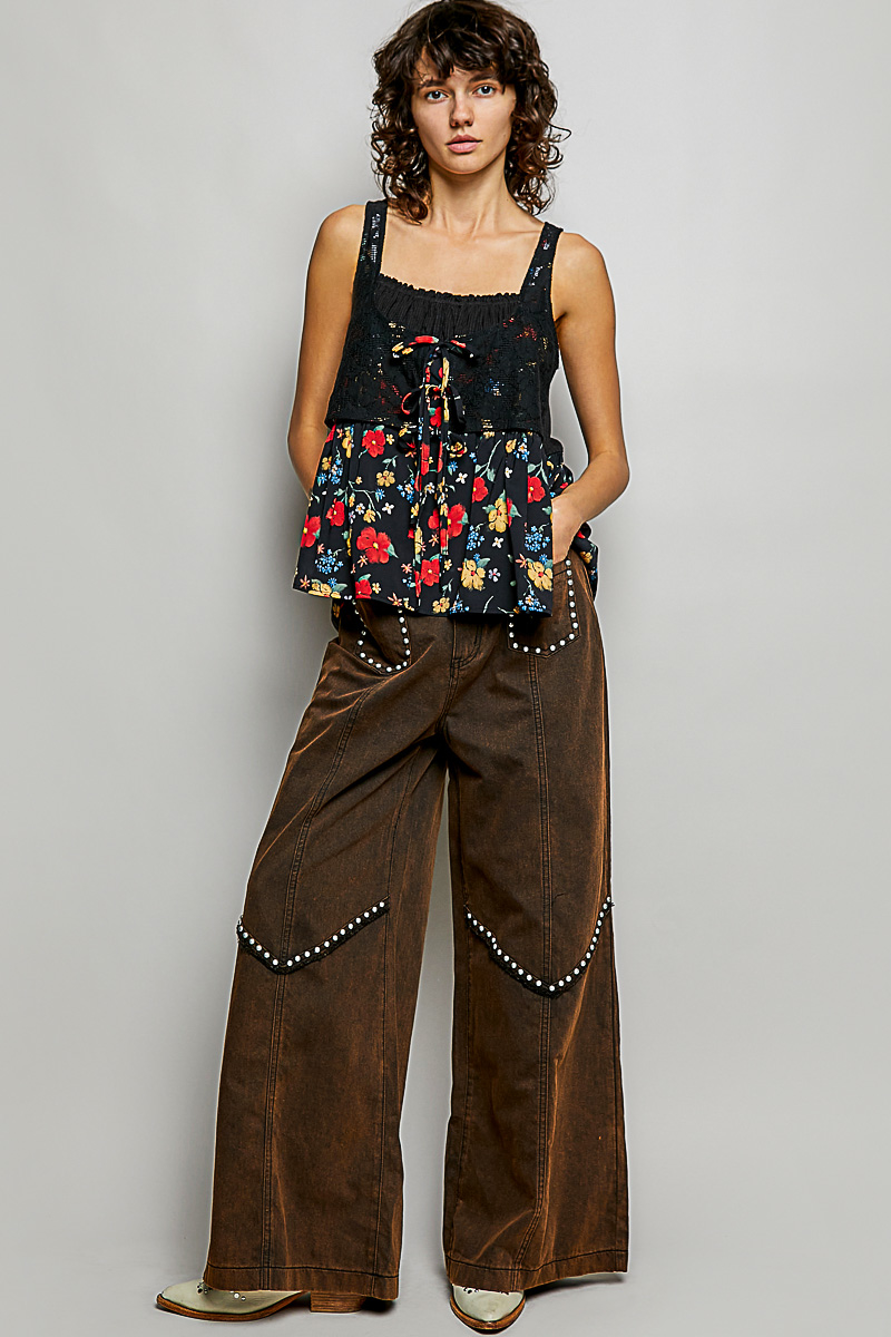 This round neck sleeveless top is designed in a regular fit using soft rib fabric for comfortable wear. Featuring a lace-wrapped bust, back elastic band with shirring, floral woven patch accents, and an adjustable bust loop, these top blends feminine detail with everyday versatility. Perfect for pairing with jeans, skirts, or wide-leg pants for effortless casual or dressed-up styling.